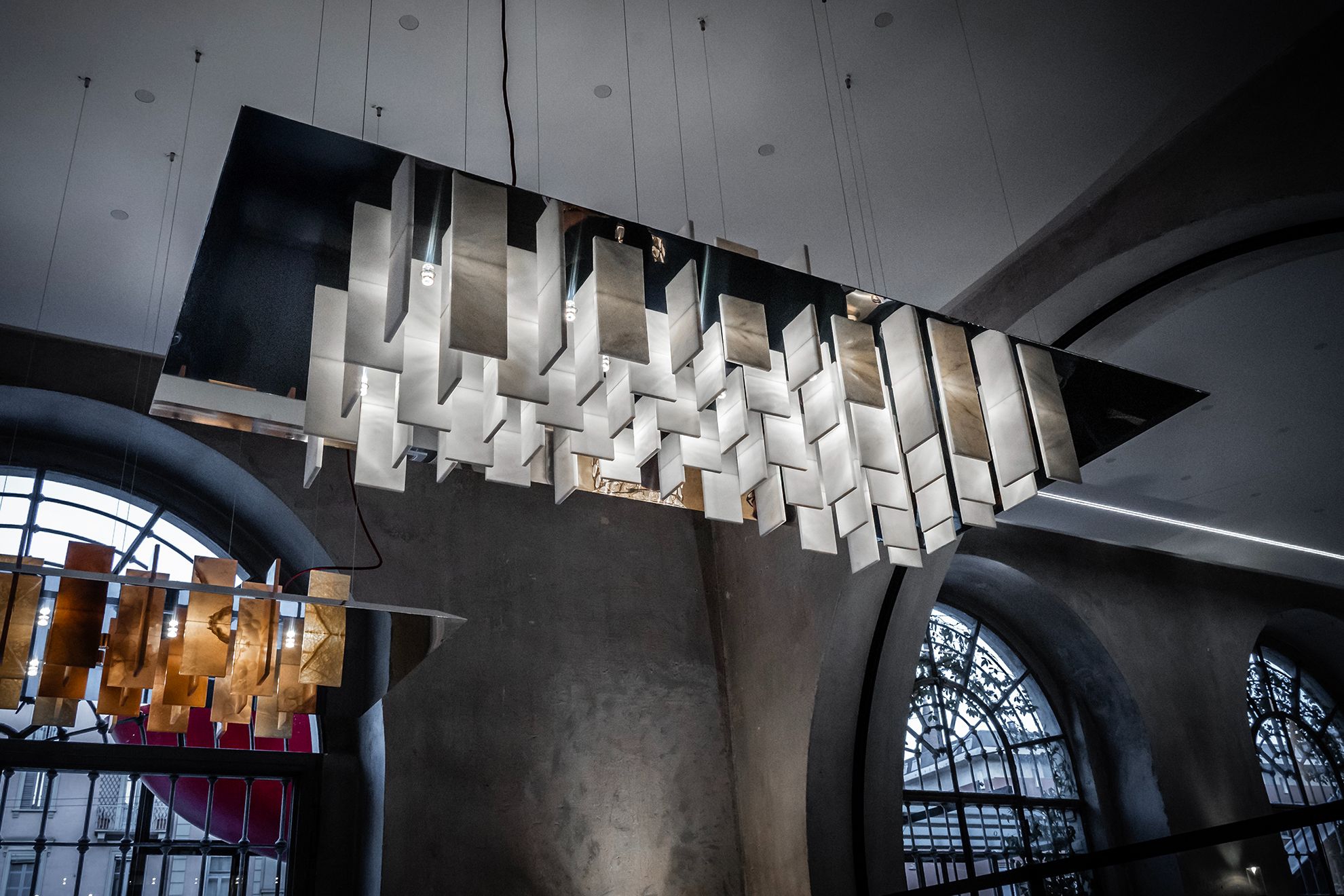 stainless steel suspension cables are included; in the wave version, dimensions plate