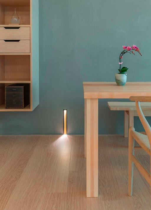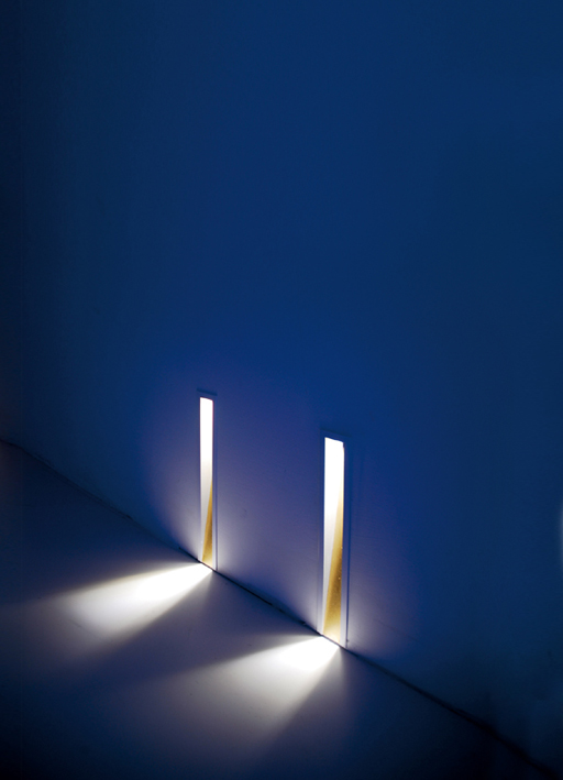 made of copper or painted steel, 328x30x60mm sized body with a 22ct gold leaf base, which makes the light beam warmer and softer.