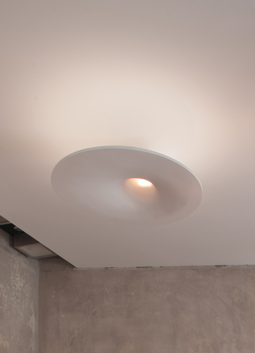 stromba incasso grande (h.581mm) with a Ø600mm diameter at the top and a Ø1000mm diameter at the bottom, wired with Ra95 3000K 42W 4032lm 24Vdc led source for indirect light, led source with G53 3000K lamp-holder up to 15W 875lm 12V with direct light kit, constant voltage power supplies not included, to be installed remotely.