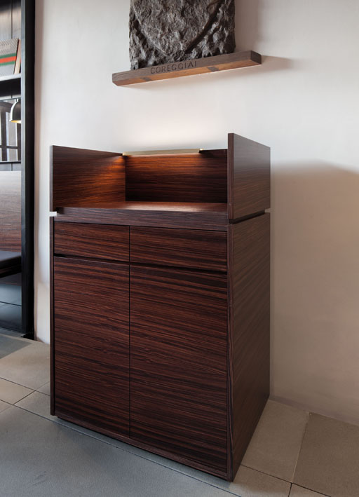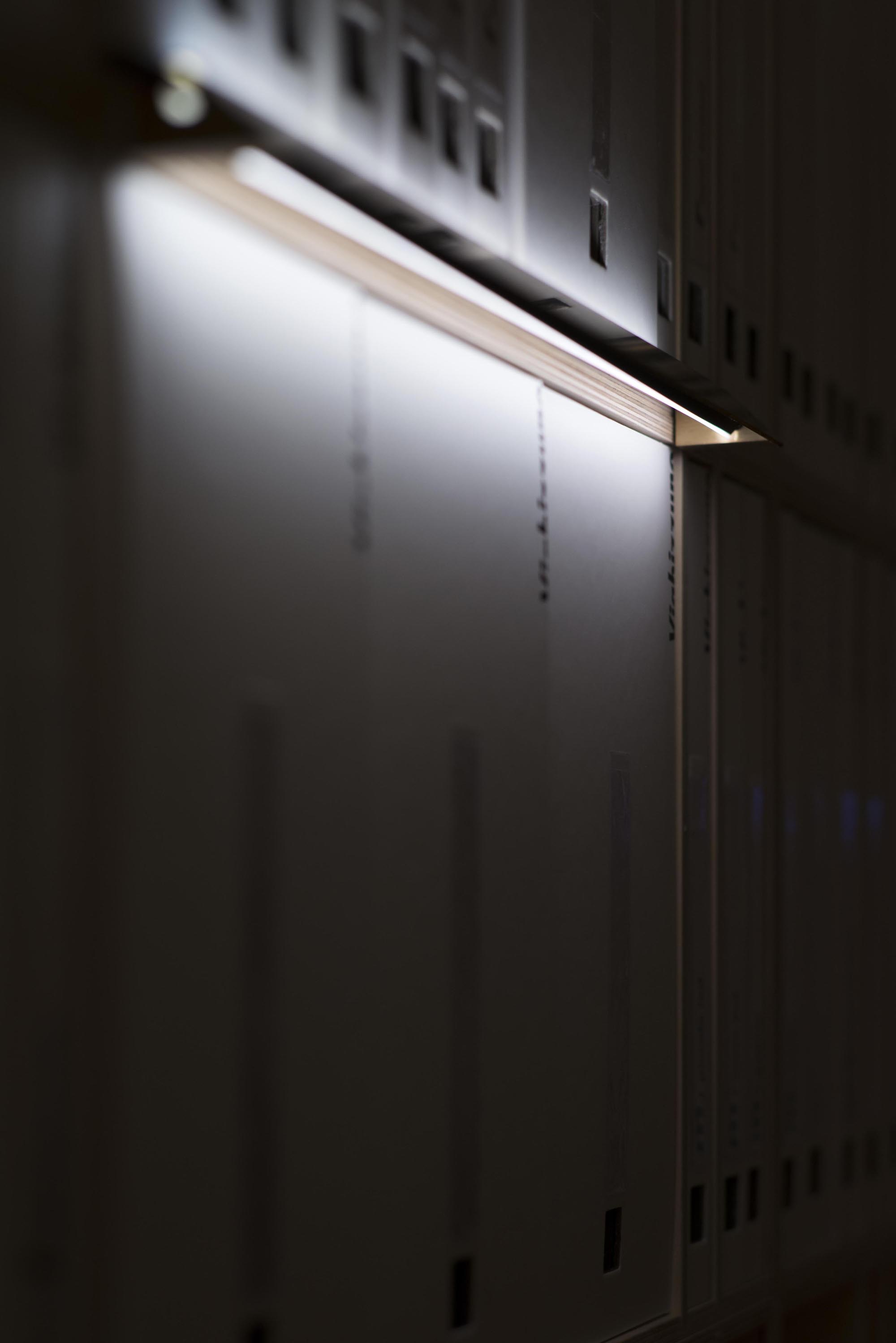 made of oxidised aluminium or natural brass, it can be installed on shelves or bookcases.