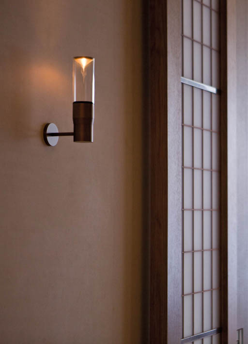 consisting of a splayed cylindrical body and a transparent pyrex cylindrical glass which is closed by means of a reflecting brass cone, with wall fixing plate diameter Ø65mm.