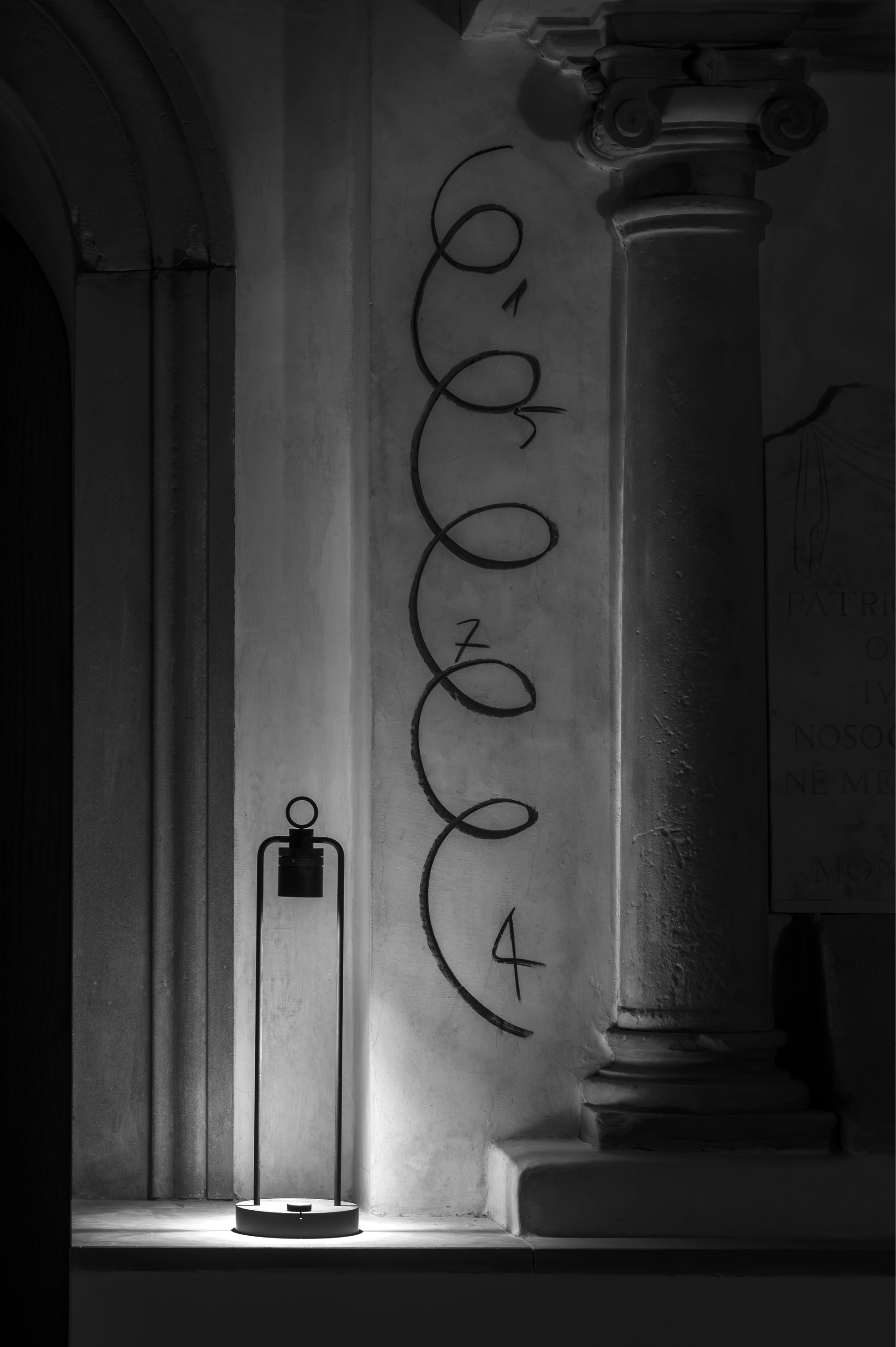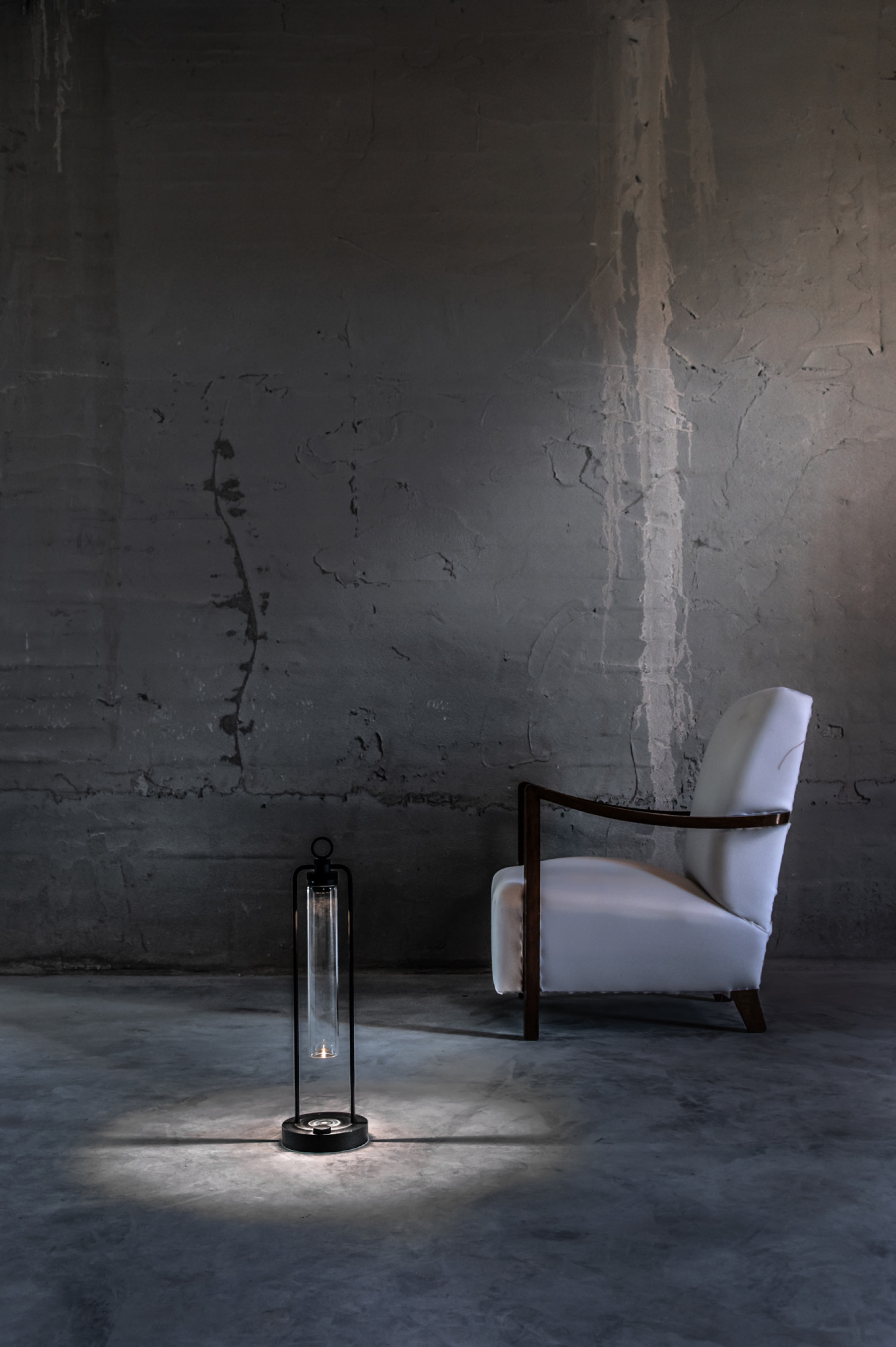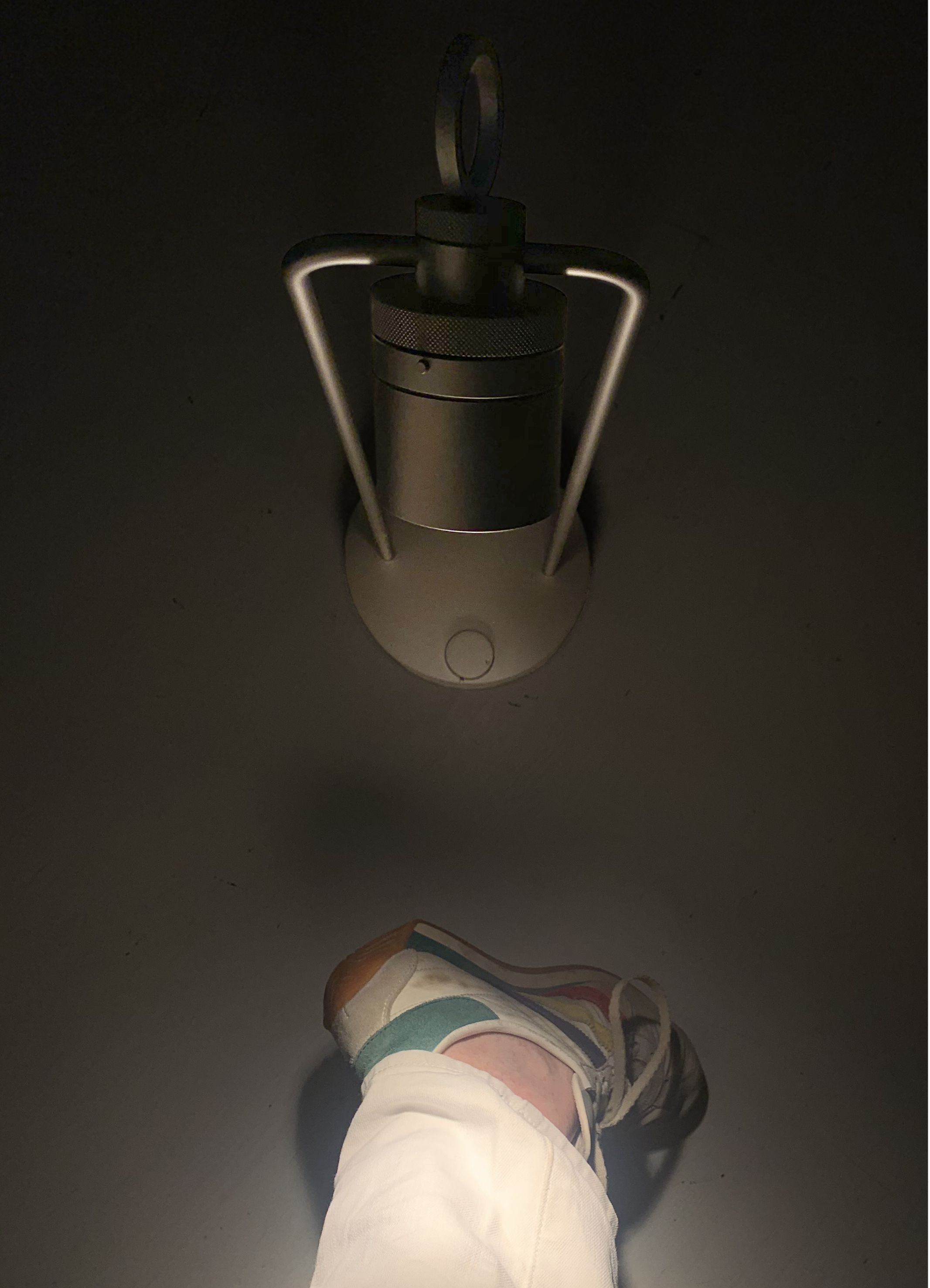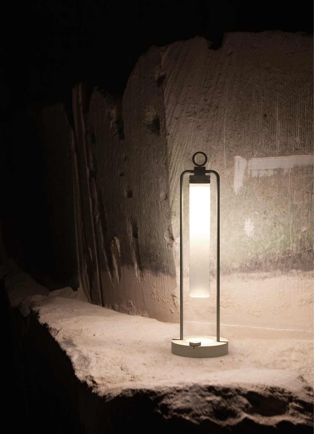 IP20 rated portable and rechargeable light fitting for indoor use. made of oxidised aluminium, with a Ø150mm base in which the battery is installed and on which two h.529mm rigid rods are installed; the rods support n55 system heat sink that rotates by 180° on the horizontal axis. wired with 2700K 3.9W 355lm led source. available with dc01, dc02, kk01 and ajp01 decorative diffuser for diffused light or spot55x61 15° and spot82x79 37° technical diffuser. any irregularities in the glass are a guarantee of an unique product, blown and entirely hand crafted by master glassmakers. 10 hours battery life, 12 hours recharge time, 100-240V/20V usb-c power supply with plug included, wall hanging kit. accessories: wall hanging kit. finishes: argento hacca, nero55.