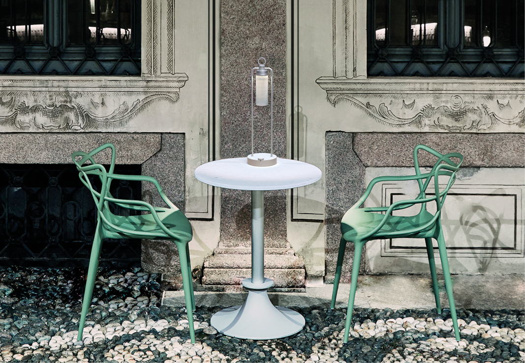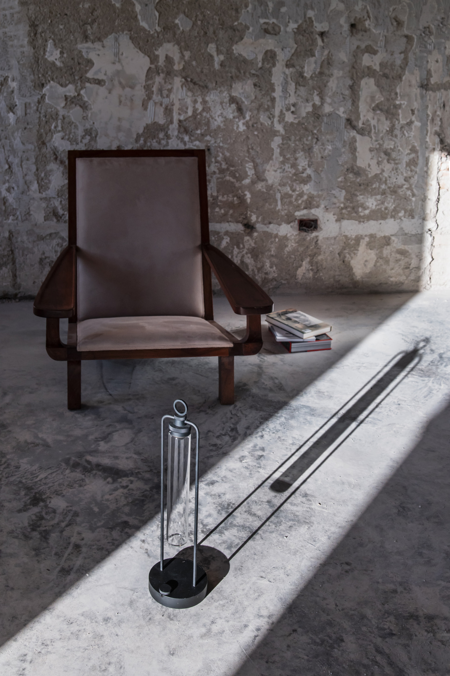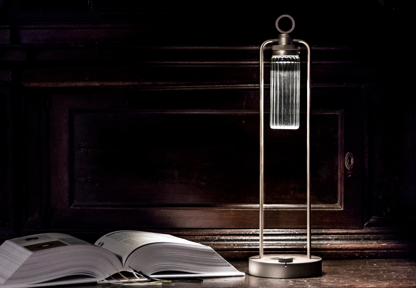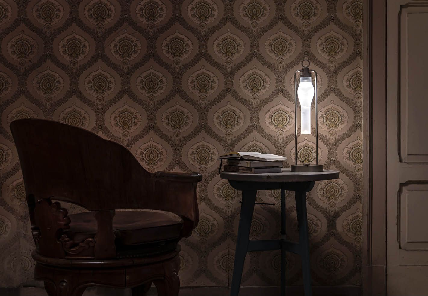 IP20 rated portable and rechargeable light fitting for indoor use. made of oxidised aluminium, with a Ø150mm base in which the battery is installed and on which two h.529mm rigid rods are installed; the rods support n55 system heat sink that rotates by 180° on the horizontal axis. wired with 2700K 3.9W 355lm led source. available with dc01, dc02, kk01 and ajp01 decorative diffuser for diffused light or spot55x61 15° and spot82x79 37° technical diffuser. any irregularities in the glass are a guarantee of an unique product, blown and entirely hand crafted by master glassmakers. 10 hours battery life, 12 hours recharge time, 100-240V/20V usb-c power supply with plug included, wall hanging kit. accessories: wall hanging kit. finishes: argento hacca, nero55.