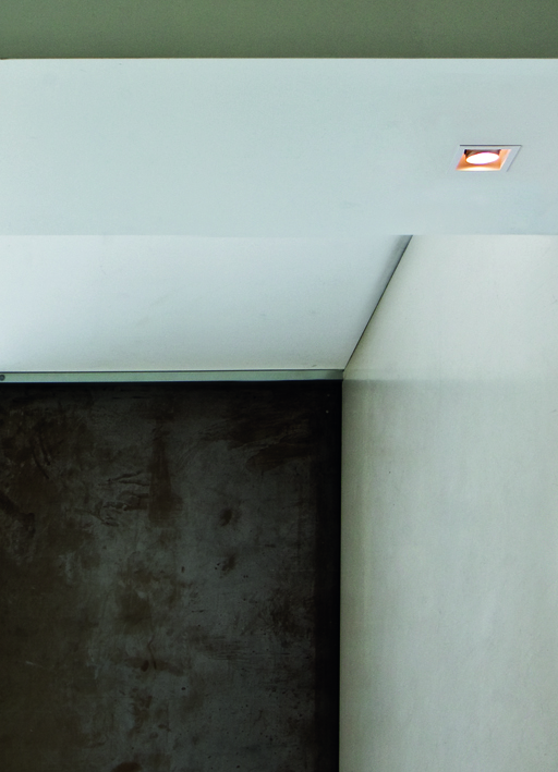 corpo illuminante da incasso per interni in metallo verniciato bianco o grigio. è disponibile in diverse versioni, tutte con unità di alimentazione inclusa. esiste un modello orientabile alogeno da 37W (con attacco GU5,3) o ad alogenuri metallici da 20W (con attacco GX10). i modelli 45° e 90° sono cablati per lampada alogena massimo 37W e possono montare un vetro diffondente. tutte le versioni possono essere utilizzate come segnapasso o come luce d’ambiente.