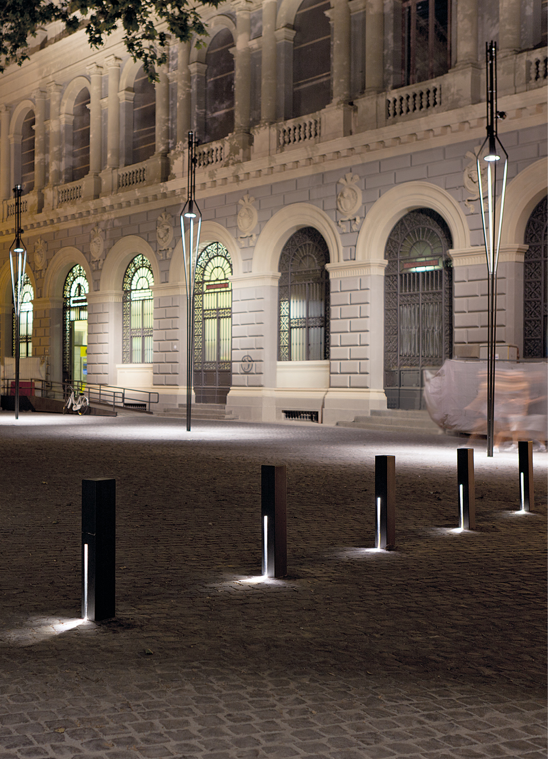 IP55 rated light fitting for outdoor use. made of hot galvanised and powder painted steel. versions: martinoeffe palo a1 h.4600mm with possible floodlight mounting at 4475mm and 3835mm from the ground, martinoeffe palo a2 h.6000mm with possible floodlight mounting at 5875mm and 5235mm from the ground, martinoeffe palo b1 h.4600mm with possible floodlight mounting only at 4475mm, martinoeffe palo b2 h.6000mm with possible floodlight mounting only at 5875mm, martinoeffe dissuasore, bollard version. wired with 3000K led source, 350mm floodlight with 12W led kit and 650mm floodlight with 3x12W led kit. the bollard version is wired with 3000K 1W led source, ground anchors included. 220-240V 50-60Hz dali or astrodim dimmable power supply included. accessories: fixing bracket for the floodlight wall mounting. finishes: antique brown, night black, scurodivals and silver grey.