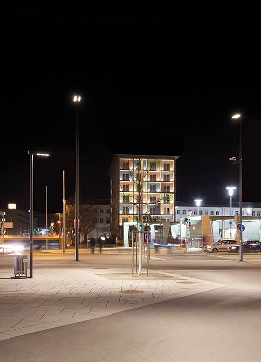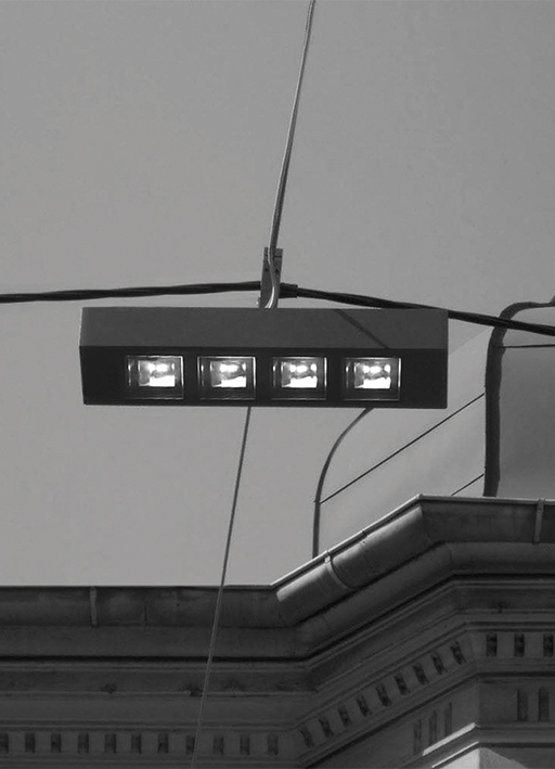 made of oxidised and powder coated aluminium, it can be suspended with the tesata system or installed on a hot galvanised steel pole superficially treated and powder coated with a section of Ø102mm h.4700mm or h.7700mm above ground.