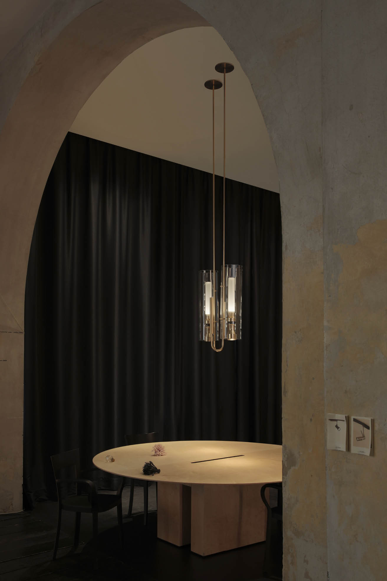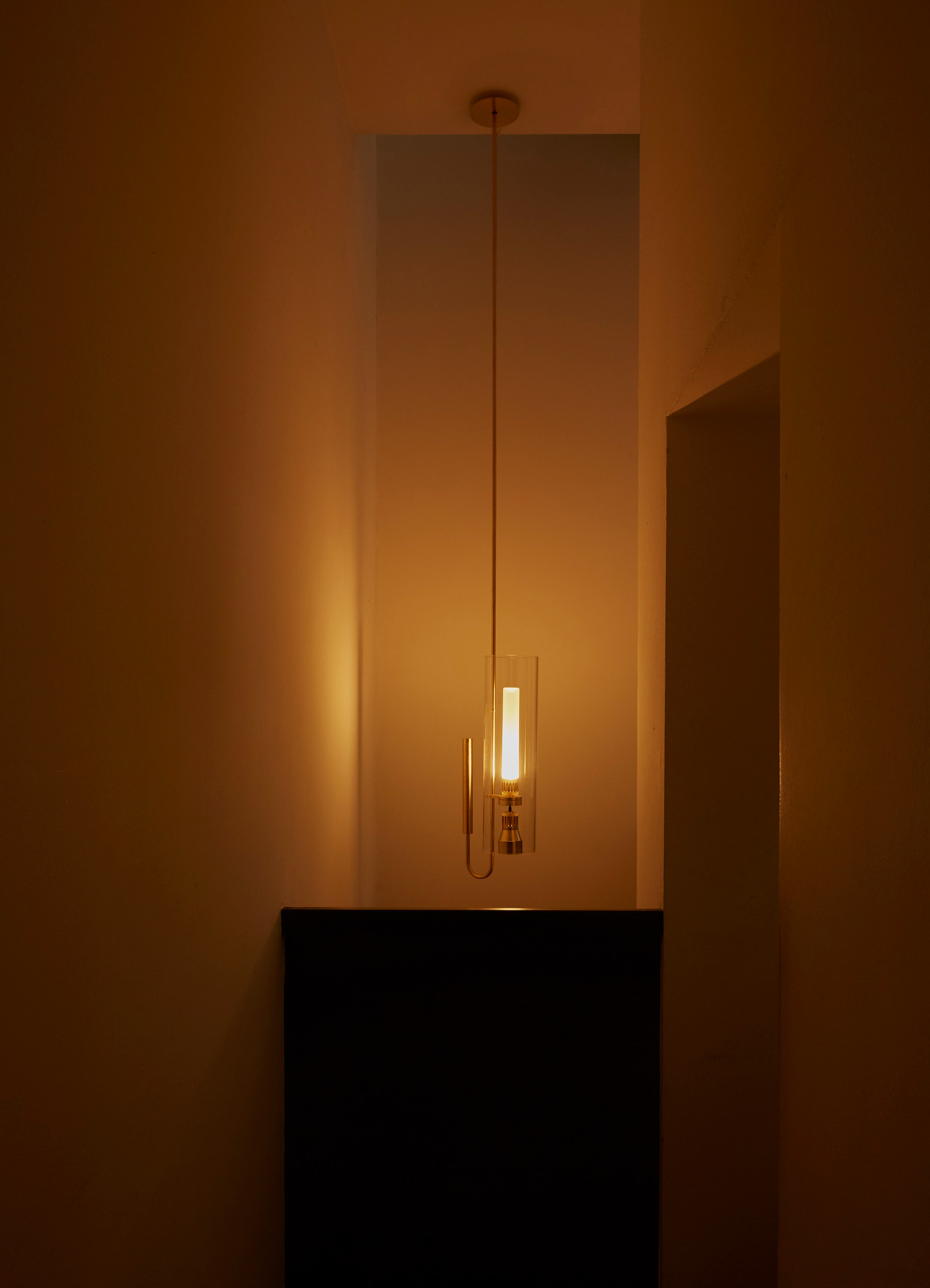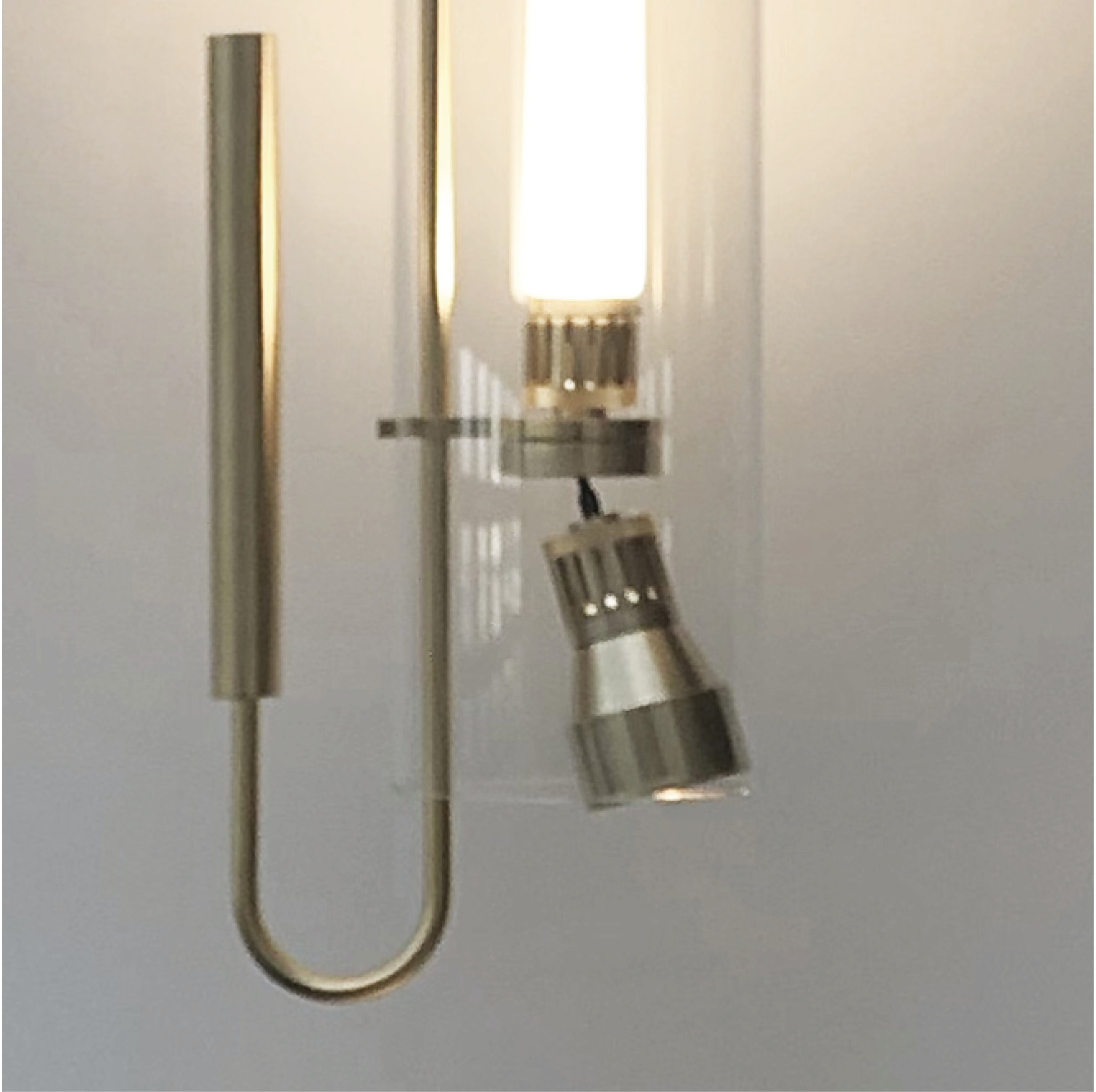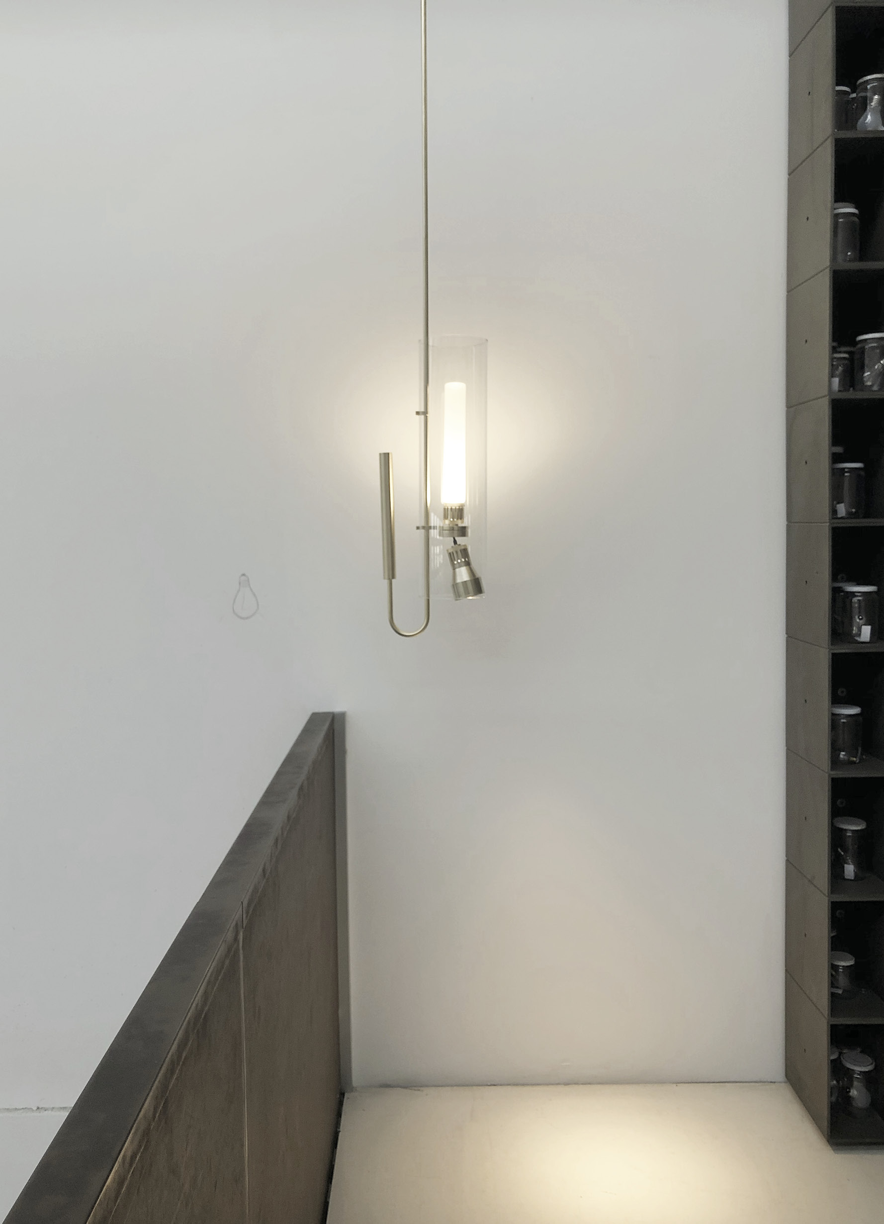 wired with electronic source 2700K Ra98 14W 1580lm for direct light and indirect light. optics: sanded glass for diffused indirect light, direct light spot 25°.