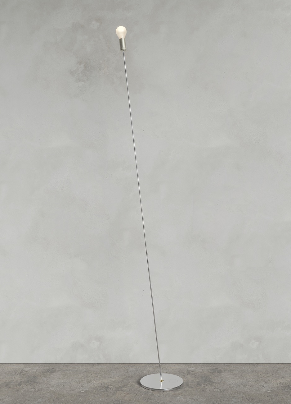 IP20-rated floor light fitting for indoor use made of oxidized aluminum and steel. polished base Ø240mm with touch sensor to turn on turn off and modulate the light source and adjustable housing for wiring rod h.1977 with n35 interface.