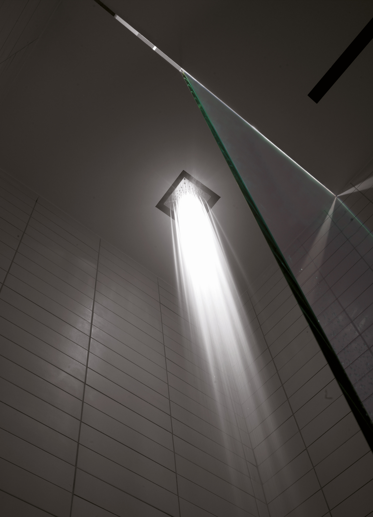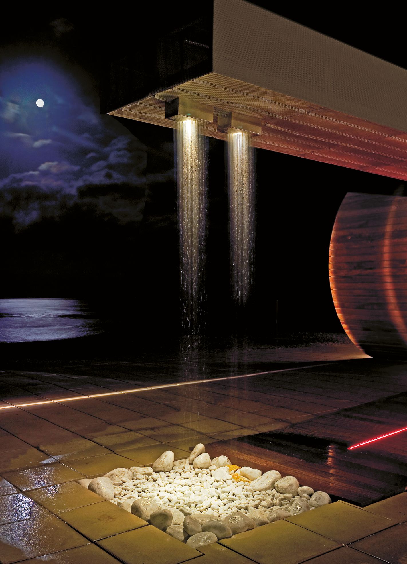 IP65 rated ceiling or total recessed light fitting with integrated water supply in accordance with EN 1112.