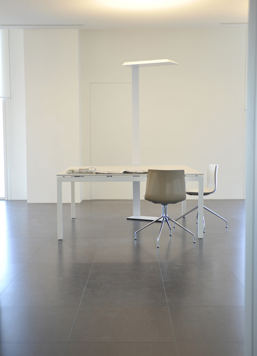 le thème de l'éclairage des postes de travail a été traité à travers la conception d'un lampadaire, piantana 16.64 pour garantir les standards d'éclairage requis avec un type d'éclairage diffus.