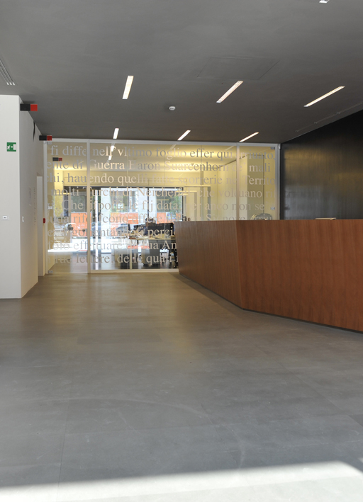 le projet pourrait se définir comme une architecture faite d'architectures. la boîte vitrée, sur le versant Ouest, élément angulaire placé sur l'axe du parcours de porta cerese, représente un espace ‘symbolique', un lieu qui s'annonce de loin mais aussi un signe urbain précis que l'on rencontre en accédant à la ville.