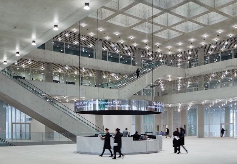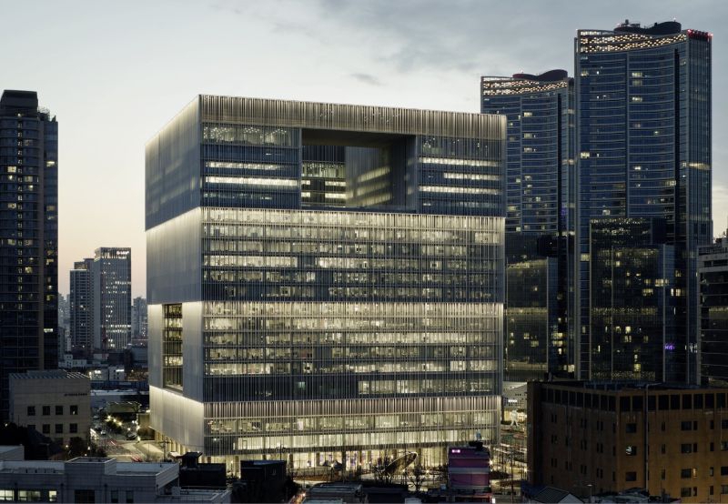 et la fourniture de dispositifs d’éclairage du quartier général d’amorepacific, multinationale coréenne de cosmétique.