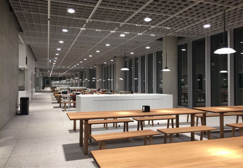 spatial et visuel total à ceux qui travaillent sur place, les alimentateurs sont intégrés sur le bord des lampes tandis que les variateurs dali sont utilisés dans une plage de variation 1-100 %, flicker free.