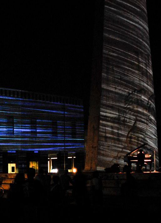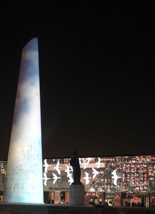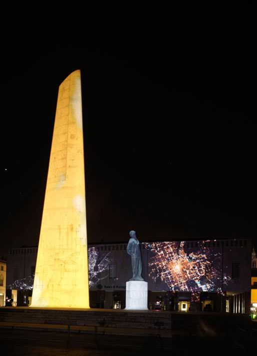 la sera del 24 luglio 2008 piazza francesco baracca a lugo si è trasformata in un teatro sotto le stelle: una platea di più di mille persone si è immersa nello spettacolo di luce e voce messo in scena da mario nanni e john de leo. la lampadina a immagini variabili di mario nanni ha dato una nuova luce al monumento di baracca. un progetto legato alla nascita, al volo e alla vita. una nuova luce che illumina, emoziona e comunica.
