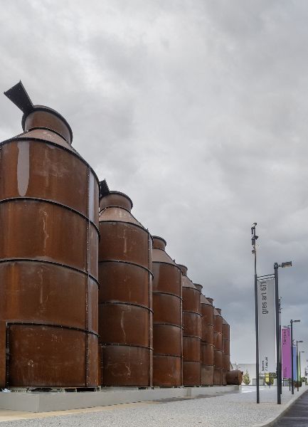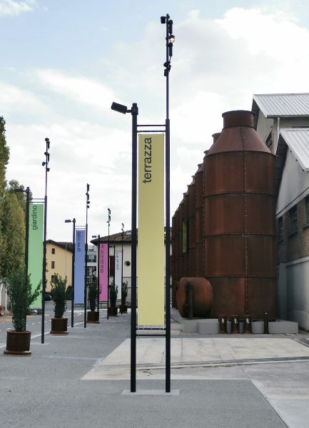 costituito da 2 tubolari in acciaio inox AISI 304 verniciato di diametro Ø76mm distanziati 770mm e con altezza fuori terra 7700mm.