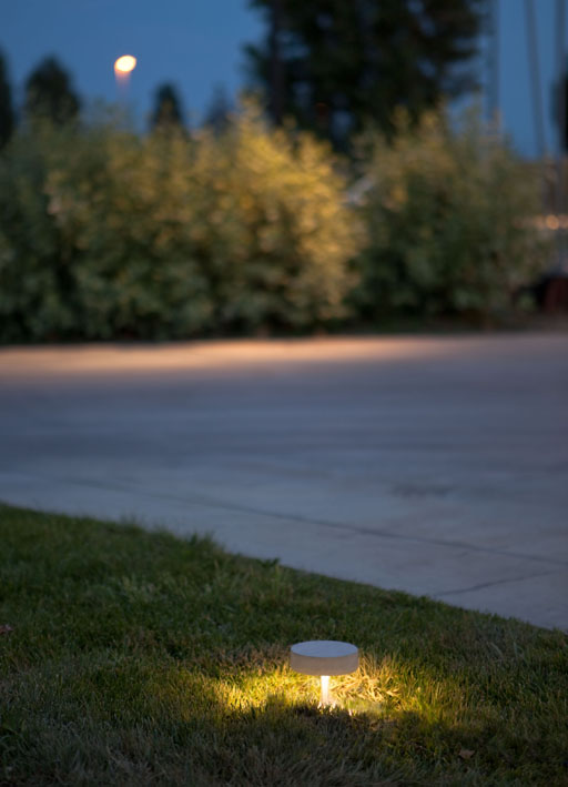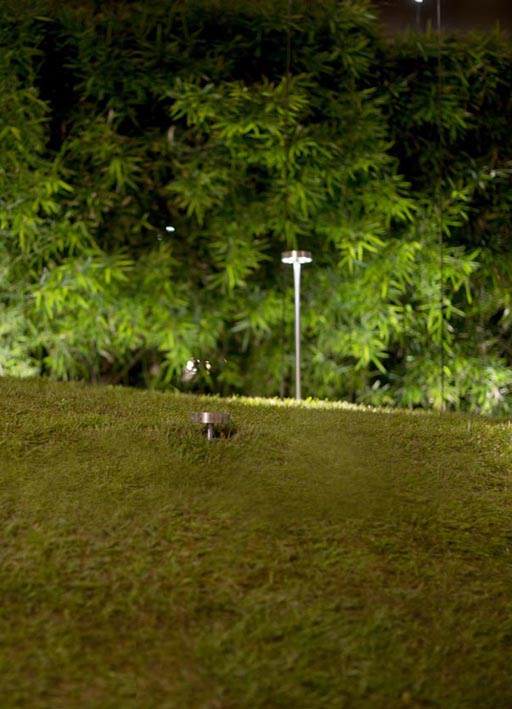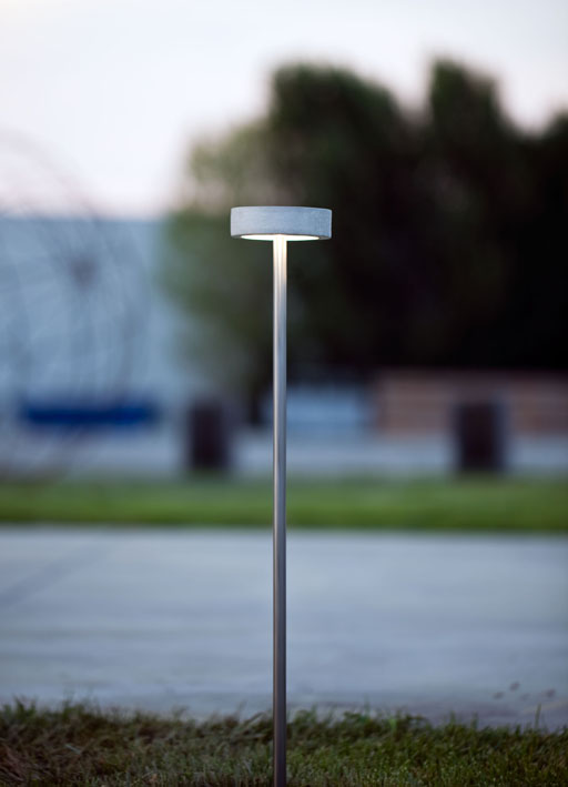 apparecchio di illuminazione da terra per esterni realizzato in acciaio AISI 316L e alluminio.