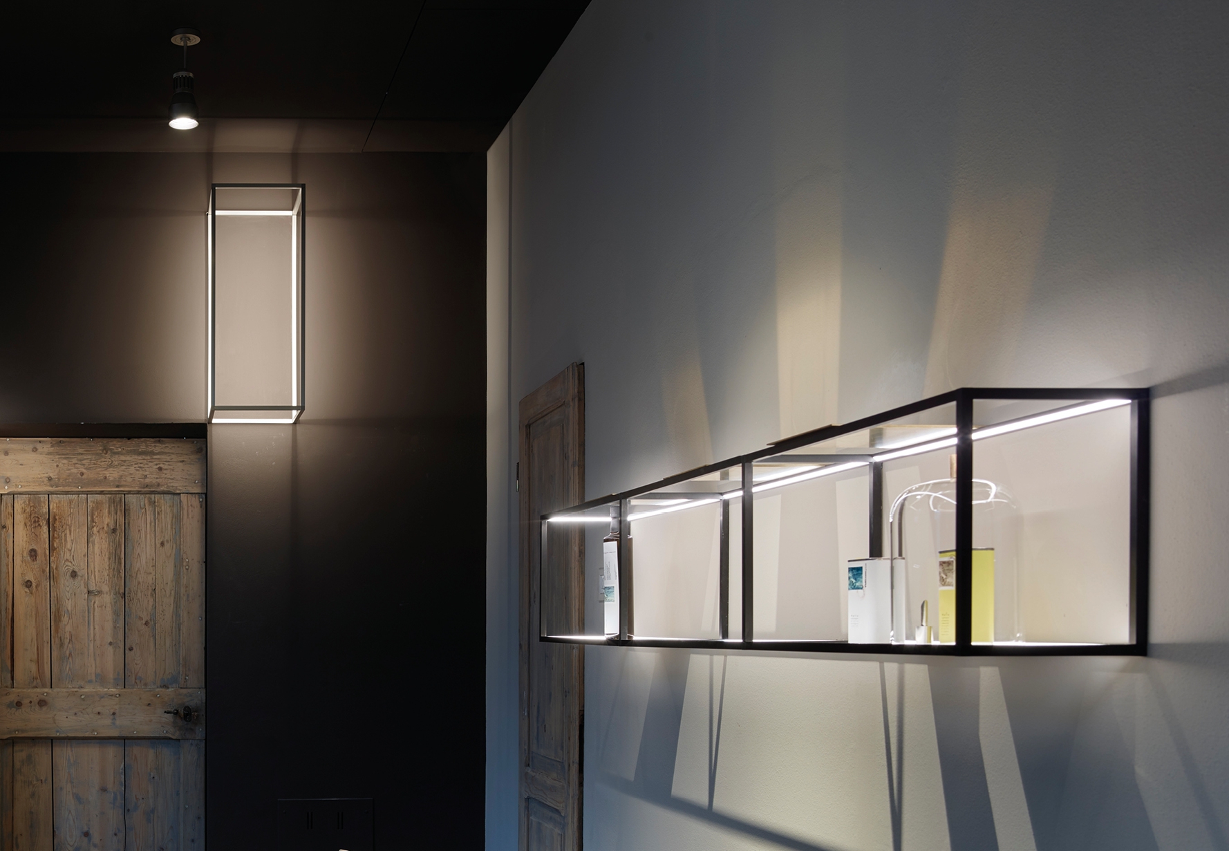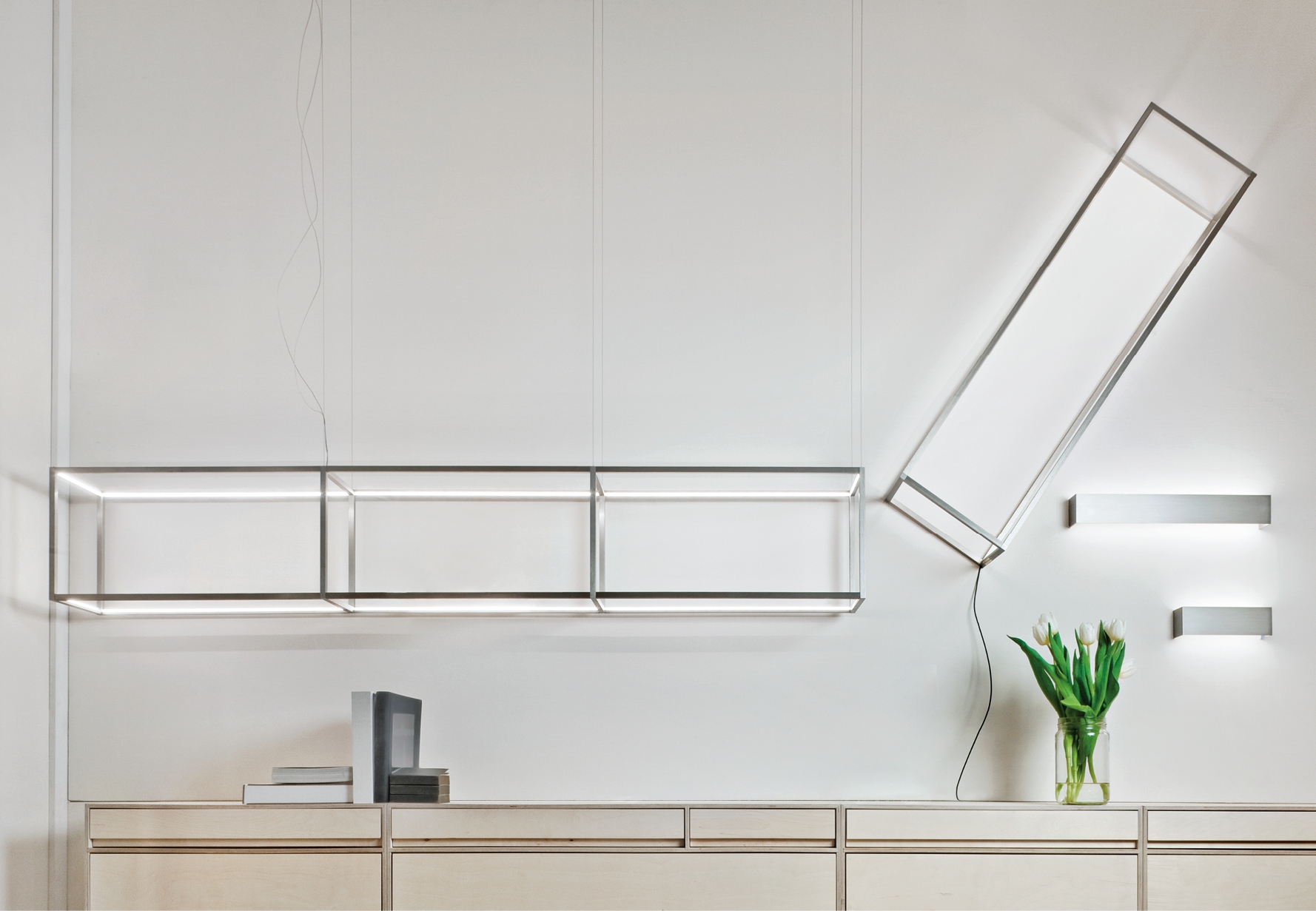 apparecchio di illuminazione da soffitto, parete, tavolo, terra e sospensione per interni IP20. realizzato in estruso di alluminio ossidato di sezione 13x13mm. composto da profili ciechi o chiusi a 45° da un diffusore estruso in policarbonato satinato della stessa lunghezza del profilo con aletta antiabbagliamento 4mm. modelli: 13° angolo 500mm, 1000mm, 2000mm o 3000mm fino a 39W 3744lm, 13° angolo 01 210x297x630mm, 22,5W 2160lm, 13° angolo 02 210x297x1050mm, 33W 3168lm, 13° angolo 03 210x297x1864mm, 47W 9600lm, 13° angolo sospensione 210x297x1864mm, 96W 9600lm, sospeso tramite otto cavi di acciaio 3000mm. cablato con sorgente elettronica lineare con limitatore di corrente integrato 3000K Ra95 13W/m. alimentatore in tensione costante 24Vdc escluso, da installare remoto in modello 13° angolo e 13° angolo sospensione, alimentatore a spina in modelli 13° angolo 01, 13° angolo 02 e 13° angolo 03. accessori: ripiani, campane in vetro e, solo per modello 13° angolo sospensione, rosoni di alimentazione, cassaforma scomparsa totale laterizio e cartongesso per cavo di alimentazione e rosone con alimentatore 220-240V 50Hz. finiture: acciaio acciaio e nero55. personalizza la tua luce vai su www.Viabizzuno.com