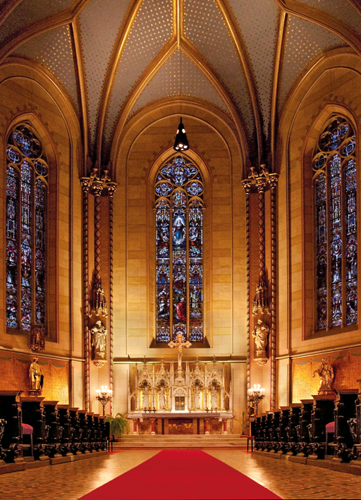 olomouc è uno dei siti cristiani più suggestivi dell’europa centrale. la cattedrale è stata eretta nel 1100 ma, distrutta da incendi nel 1204, 1266 e 1803, è stata ricostruita ogni volta in stile diverso, dal romanico al nuovo gotico. oggi la cattedrale ha la seconda torre più alta di tutta la repubblica ceca e la campana più grande della moravia. il progetto della luce ha coinvolto gli spazi della cattedrale, unitamente alla cripta e alle quattro cappelle. la sagrestia gotica è alta 23 metri e la navata 16,5 metri: la luce doveva essere suggestiva, ma non c'era la possibilità di pensare ad un'illuminazione a scomparsa. un'altra difficoltà progettuale era dovuta agli innumerevoli dipinti sui muri e alla presenza di teche con reliquie sacre. i progettisti si sono confrontati con le idee e i pensieri dell'arcivescovo; vbopraga ha lavorato in stretta collaborazione con l'architetto gerhard che ha ideato i corpi illuminanti in modo che si accordassero il più possibile allo spazio. l’obiettivo di minimizzare l’impatto delle nuove sorgenti di luce sull’architettura preesistente è stato raggiunto servendosi di forme semplici, dimensioni ridotte e finiture appropriate. nella sagrestia è stato collocato un cilindro speciale, con lampade orientabili 8x70W mh, sospeso per illuminare la cupola, l’altare e la panca. sui muri sono state inserite delle mosaico parete con lampade alogene 2x70W mh e 4x50W per illuminare tutta l’area e il muro dietro l’altare. nella navata è stato utilizzato lo stesso schema progettuale adottato sui muri, ma l’altezza ridotta ha permesso di utilizzare anche il cilindro a sospensione con luce diretta/indiretta e un vetro speciale ambrato che diffonde all’interno una luce molto calda. nelle cappelle è stato utilizzato il corpo illuminante nettuno per illuminare la cupola e l’altare senza lambire i muri. la cripta ha due livelli di cui uno è utilizzato come museo o luogo di esposizione per la chiesa. questa zona è illuminata da apparecchi con luce indiretta nascosti dal cornicione, adatti agli ambienti dove di frequente si verifica un cambio degli oggetti in mostra. al livello dove sono custoditi i sarcofagi abbiamo usato una luce indiretta molto tenue, ottenuta con il sistema c2 IP68 led. nella zona dell’education center, invece, è stato collocato il corpo illuminante notte per sottolineare il contrasto con il crocifisso. tutto il progetto è stato realizzato per offrire molteplici possibilità: celebrazione, concerti, accoglienza di ampie folle.