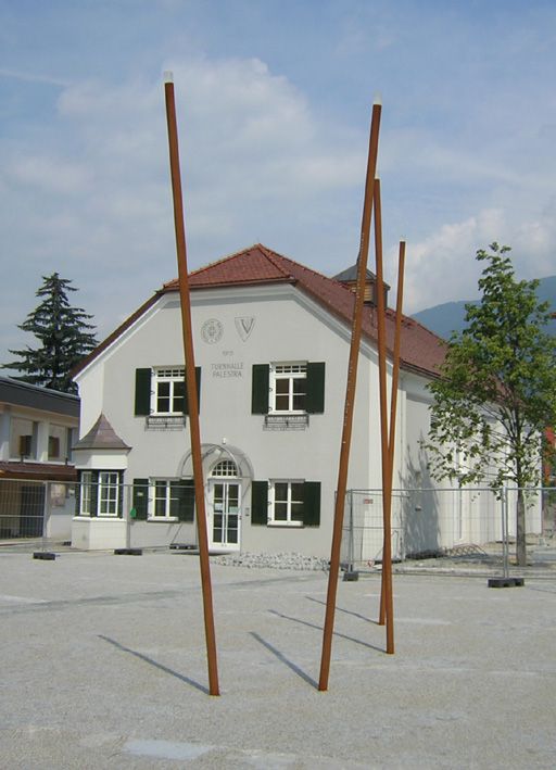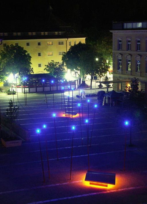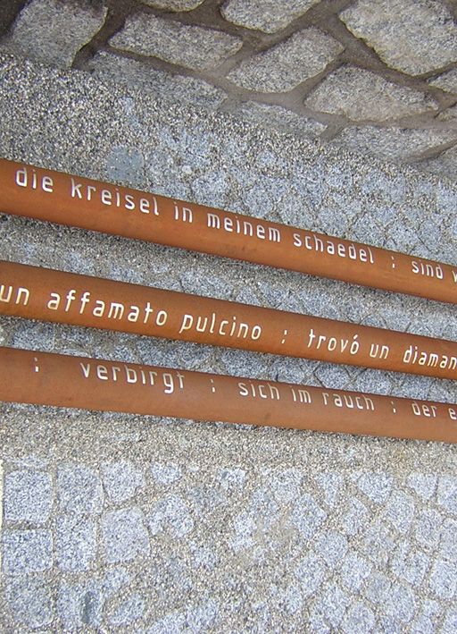 dalla sua fondazione intorno al 1250, la città di brunico non ha mai avuto una vera e propria piazza: nel corso dei secoli la via centrale e il graben ne hanno fatto le veci. la nuova piazza propriamente detta, che sorge davanti al municipio, appare tutt'oggi piuttosto decentrata: per questa ragione l'intenzione del progetto è stata far confluire la passeggiata serale e le attività dei cittadini creando una linea di collegamento fra il graben, la piazza del municipio e il suo ingresso principale. steli ossidati di 5 m di altezza e del diametro di 8 cm si dispongono ad arco lungo tutto il percorso: sulla superficie degli steli sono incisi i pensieri del poeta brunicense norbert c. kaser, morto nel 1978 ad appena 31 anni.