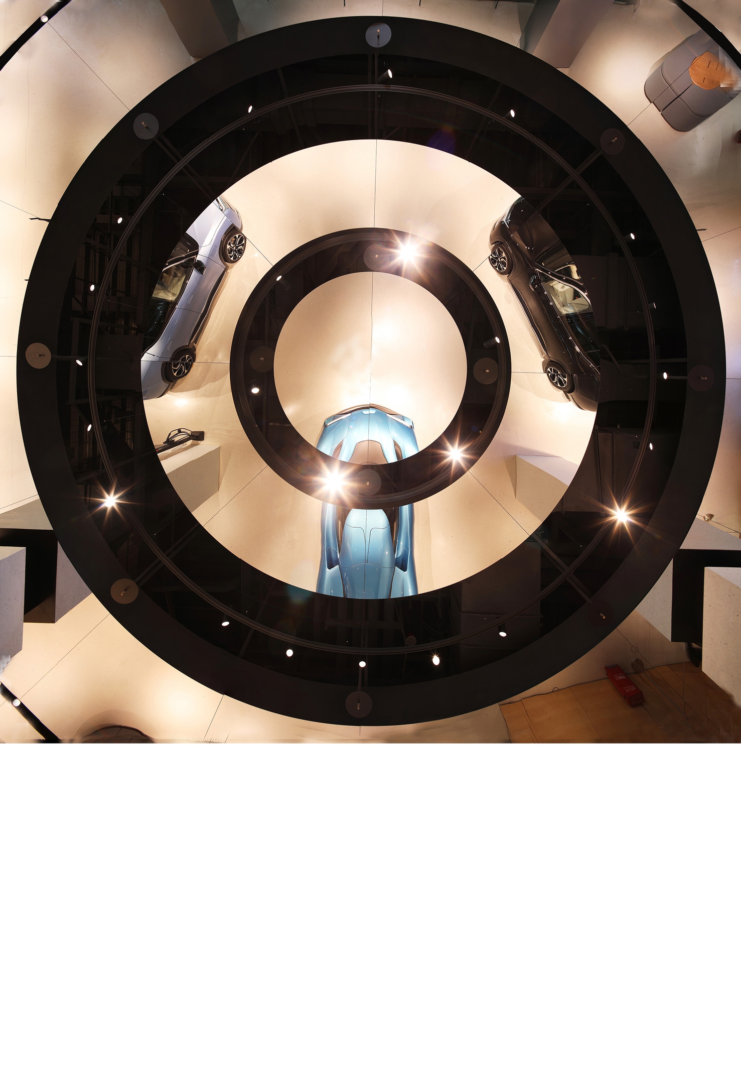 studio della luce per valorizzare le vetture ed i materiali, e nella