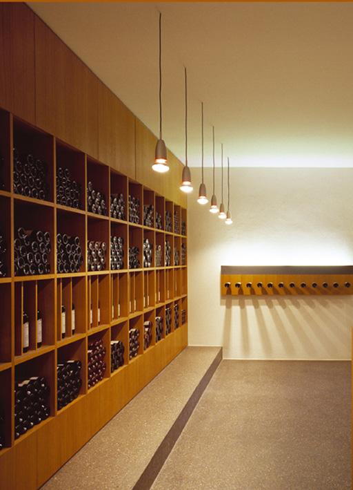 l'obiettivo del progetto era creare un nuovo negozio per la casa vinicola a conduzione familiare unitamente ai locali adibiti alle degustazioni. oltre ai necessari interventi statici, l'impostazione è stata quella di ridurre lo spazio ai propri elementi minimi rappresentati da parete, soffitto, pavimento e di tematizzarlo in linea con il suo carattere. un chiaro e dicreto concetto di illuminazione esalta i volumi, conferendo agli ambienti un clima temperato grazie ai diversi colori della luce. il ricorso a pochi ma mirati materiali naturali e soprattutto la cura del dettaglio conferiscono all'ambiente un carattere semplice e discreto ma allo stesso tempo nobile.