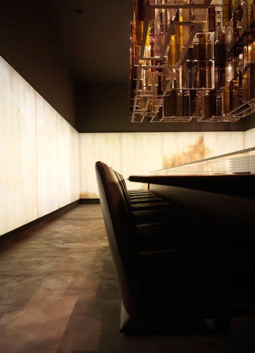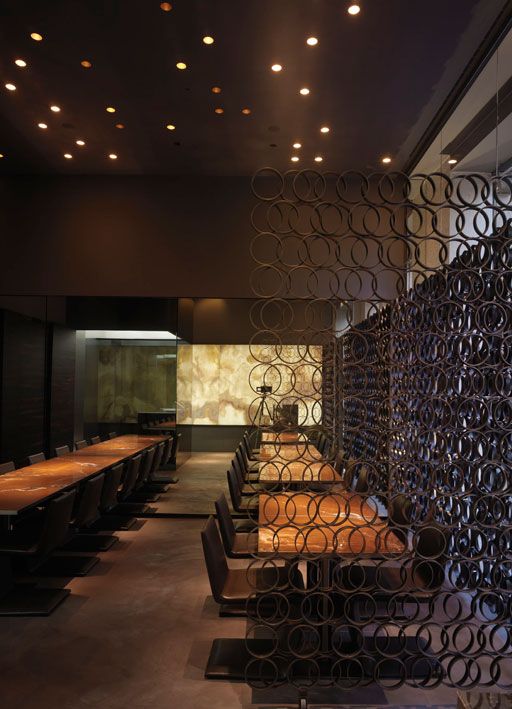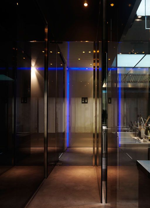 atteggiamento per cui l'introiezione del decoro è divenuta proverbiale quanto il riserbo dei suoi abitanti. l'esempio di piero portaluppi, nella vicina casa degli atellani, ha ispirato molte delle scelte del progetto e condotto il committente ad operare per delega, come nelle grandi commesse del passato. un certo coraggio spaziale nella definizione dello zoning, dovuto anche alle limitate dimensioni dello spazio, l'utilizzo di un parametro sentimentale per la scelta dei materiali e il vezzo di oggetti tutti artigianali, sono gli artifici di un esercizio prevalentemente non speculativo. su di una superficie di circa 200 mq, si sviluppano una cucina a vista, viscere d'acciaio avvolte da un tamponamento di vetro specchiante, una sala da pranzo con sedici posti a sedere e un privé riservato per altrettante persone. in uno spazio separato, con un accesso indipendente dalla strada, si trova il take-away, vera innovazione funzionale di questa gastronomia contemporanea. un banco di marmo nero espone alimenti assemblati con la cura maniacale del gioiello artigianale, recuperando il piacere dell'acquisto a vista, per forma, colore, consistenza e turgore. al piano interrato scorrono i flussi ordinati delle pezzature del pesce che trasformano una comune cantina condominiale in un sistema preciso di assemblaggio delle merci. la preparazione del cibo, secondo una consuetudine ormai stratificata nell'abito internazionale, avviene nel punto più visibile dalla strada, in corrispondenza dell'ingresso, evidenziando il carattere di cura per la preparazione del cibo che la cucina giapponese considera parte integrante del rito del nutrirsi. una grande cancellata composta di sezioni cilindriche di ottone brunito, sfalsate per sesti di raggio lungo l'asse orizzontale e disposte su due differenti livelli per intersezione, produce lungo il corso un grande filtro scultoreo, memore degli arzigogoli floreali dell'eclettismo novecentesco. l'involucro è un campo grigio, dove presenza di forme e rigore geometrico indulgono ad un'atmosfera di calore e sensualità. alcuni selezionati elementi esibiscono il decoro della propria trasformazione fisica, la fotografia di un processo di stratificazione che l'elaborazione artigianale ha sezionato e fissato nel tempo. un concetto di sfarzo sobrio, questo, che ha condizionato il pensiero che sottende buona parte del progetto. le striature orizzontali dell'ebano come i tappeti tigre dell'himalaya, le calcificazioni e i depositi ferrosi dell'onice come macchie di rorschach. l'utilizzo della natura come componente decorativa e figurativa dello spazio è il vero legame che zero stabilisce con la cultura orientale. un lungo nastro di onice bianco, decorato da intrusioni di colore marrone e caramello e rincorso dai riflessi dei vetri che mascherano le zone di servizio, conduce a un grande tavolo conviviale di ebano e acciaio, sovrastato da un lampadario composto da quasi quattrocento formelle di vetro di murano colato. pagliesco, talpa, cristallo e ametista i nomi che venini ha coniato per le cromie di questi oggetti, due tonnellate di vetro appese attraverso una greca brunita e alcune piastre specchianti dissimulate tra i riflessi prodotti dalle fonti di luce indiretta. la circolarità dello zero, utilizzata come ‘divertissement' connota qua e là alcuni elementi del progetto. in corrispondenza dello spazio affacciato su strada 400 corpi illuminanti ‘cono infinito' dorati al loro interno (produzione Viabizzuno), annegati nel soffitto, compongono un raster irregolare di cerchi a-dimensionali che di notte appare come un'installazione luminosa. della stessa convenzione, per cui lo spazio è anche luogo di sensazioni inaspettate, si animano i servizi, dove lavabi su disegno, serramenti dalle proporzioni insolite e fonti luminose che variano colore attraverso un comando elettronico, compongono un ambiente sensibile, complementare all'esperienza del cibo.
