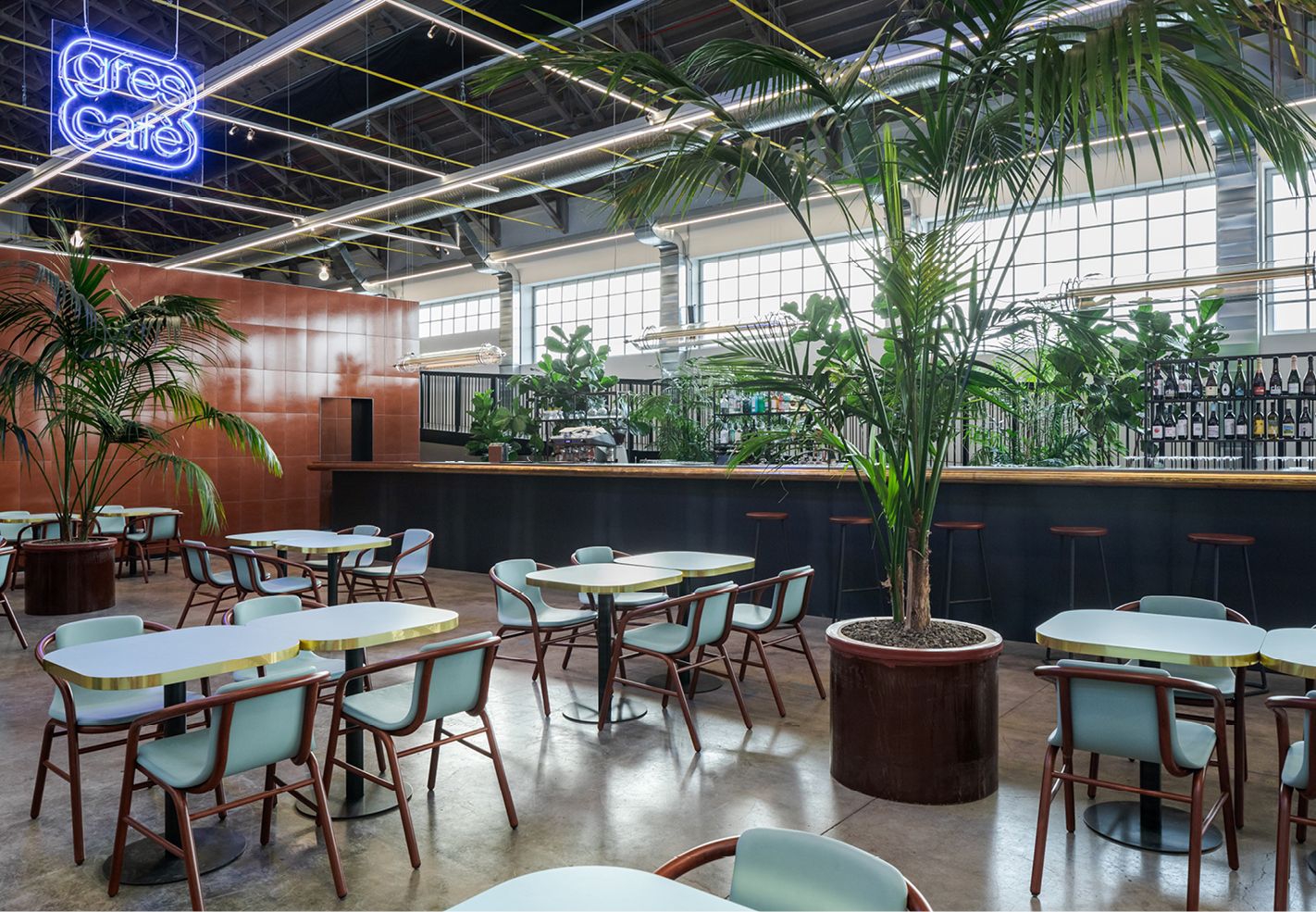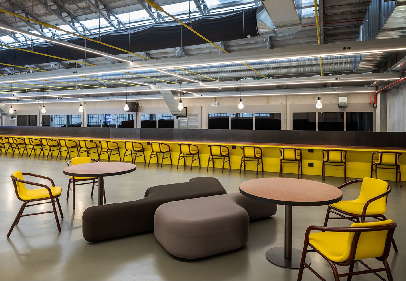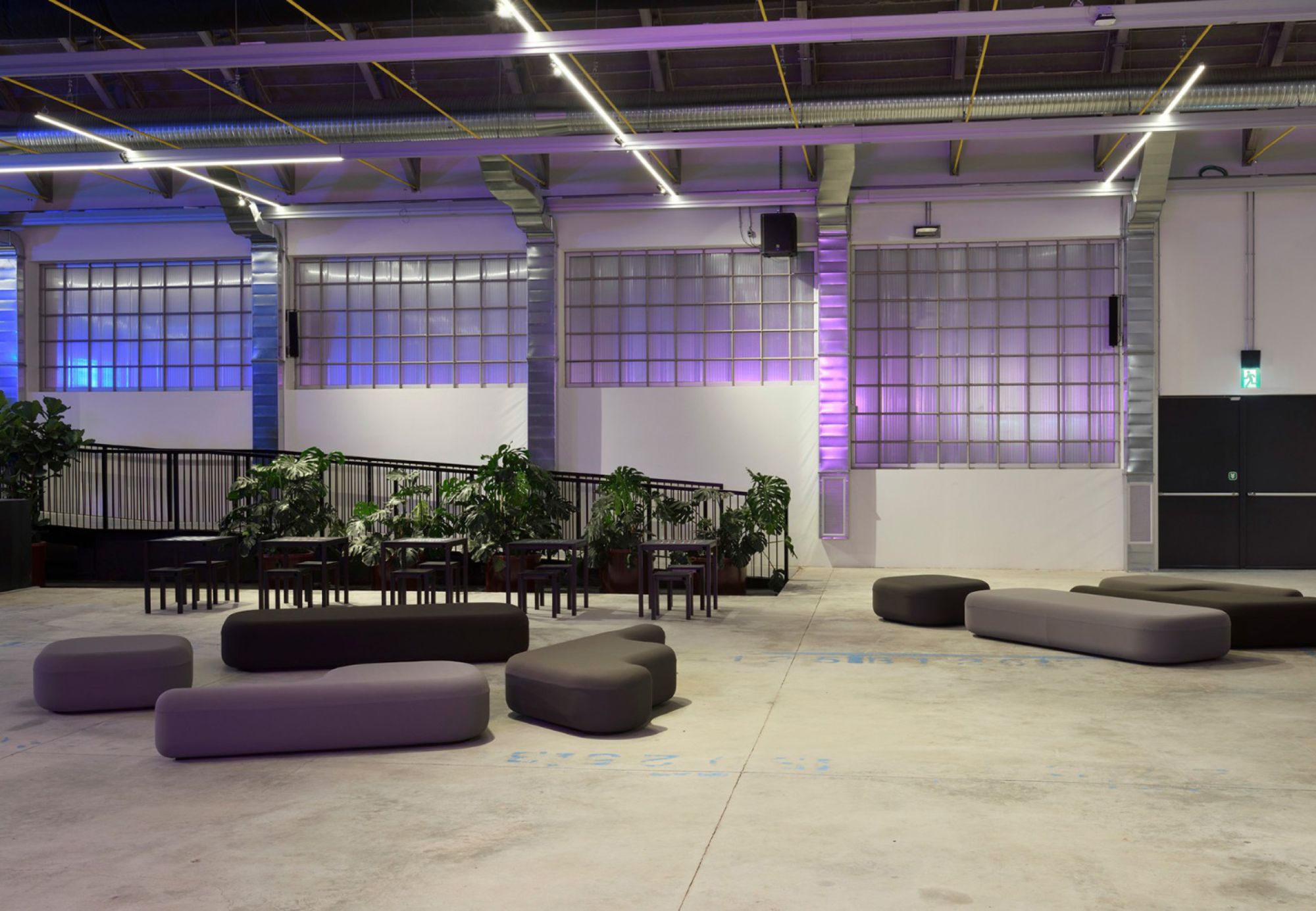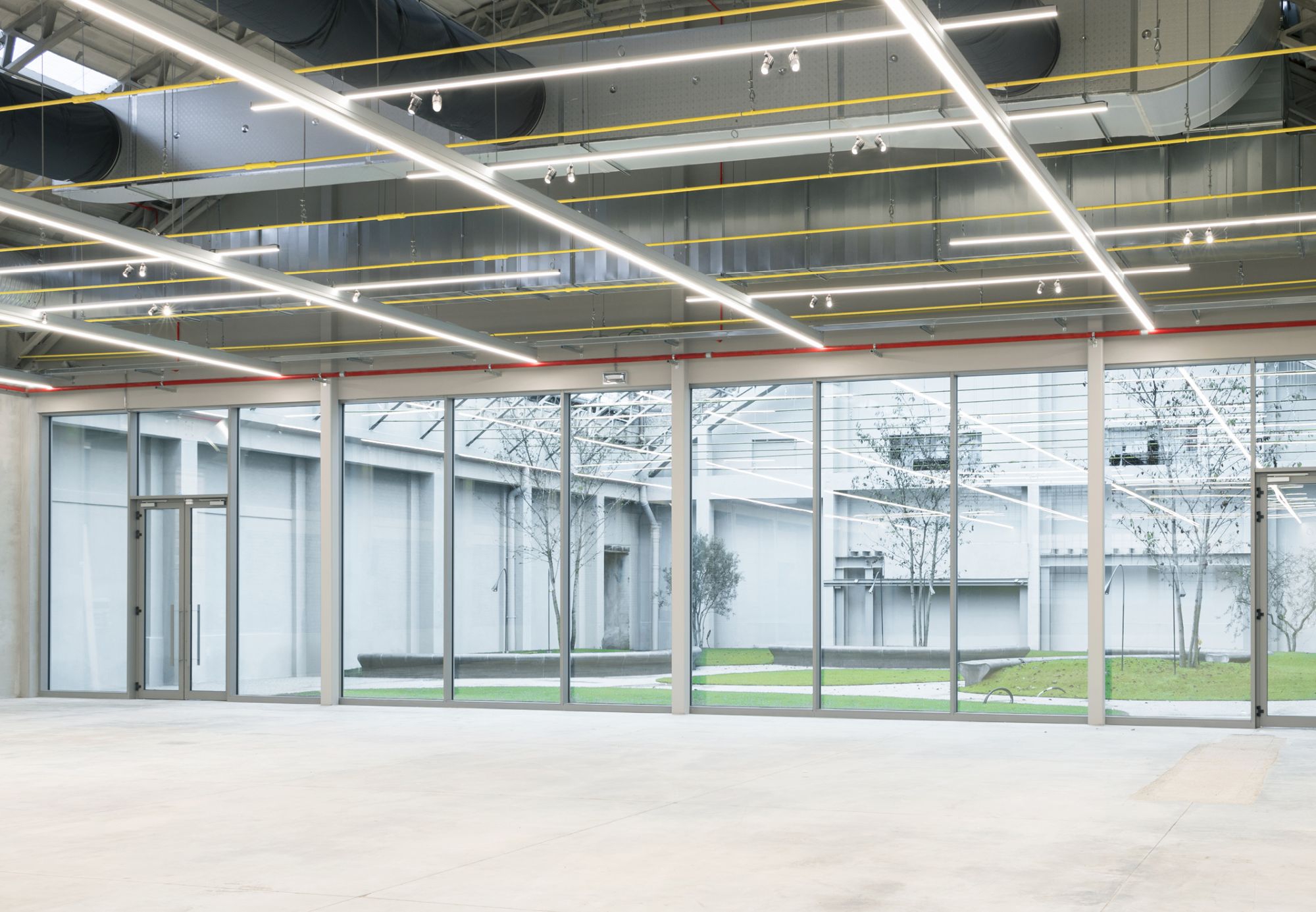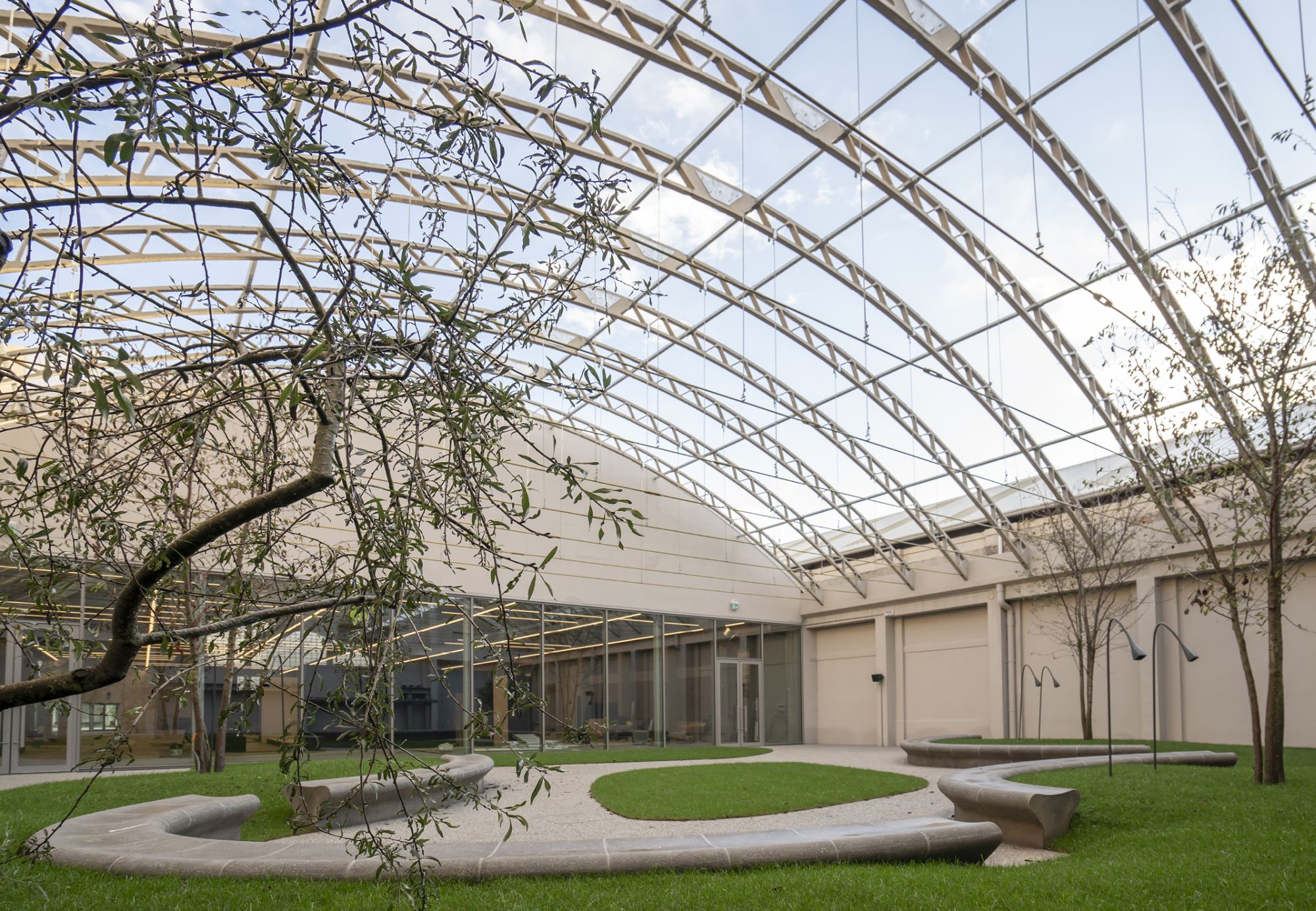 il volume architettonico, frutto dell’unione di due capannoni industriali con coperture a volta su struttura