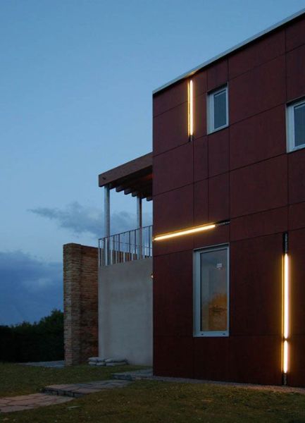 la casa fa parte di un intervento più ampio che comprende il recupero di un complesso rurale sulle colline tra salsomaggiore terme e fidenza. il progetto si compone di due parti, da un lato il recupero e la rifunzionalizzazione della villa padronale e dei fienili annessi, dall'altro, proiettata verso la campagna, una nuova casa monofamiliare nasce sul rudere della stalla ormai diroccata.la casa si imposta su una geometria a forma di L in mattoni faccia a vista, preesistenza del vecchio manufatto, e a questa contrappone una nuova L, un muro opaco e possente che permette di ritrovare la privacy rispetto all'edificio storico adiacente in cui saranno collocati sei appartamenti di dimensioni differenti.la nuova casa si trova orientata naturalmente verso la rigogliosa campagna retrostante, con il lato più aperto e trasparente. le grandi vetrate della zona giorno, della cucina e le aperture delle camere da letto al piano superiore godono di una vista straordinaria, filtrata dal giardino privato attrezzato con solarium e vasca idromassaggio. la casa si sviluppa su due livelli: al piano terra si trova tutta la zona giorno comprendente area living, cucina, zona pranzo, studio e bagno; al piano superiore la camera da letto padronale, una stanza guardaroba trasformabile in camera per gli ospiti, un bagno, un disimpegno attrezzato con armadi e un grande terrazzo privato affacciato sul verde. nel piano interrato è collocata una piccola cantina per vini e salumi con annesso un vano tecnico. la scelta dei rivestimenti è stata dettata dalla geometria delle L contrapposte. si leggono quindi il frammento in laterizio, il muro contrapposto intonacato e tagliato solo dal caminetto e dal lucernaio della scala. tutti gli altri tamponamenti verticali (prospicienti il giardino) sono stati rivestiti in pannelli di legno prestazionale. nel complesso il paramento murario esterno assume un carattere rurale e mutevole mentre l'interno rimane essenziale. qui, i toni chiari lo rendono un ambiente elegante dal carattere minimale.divisori in vetro separano le stanze ma permettono il passaggio visivo da uno spazio all'altro e il fluire della luce sia naturale che artificiale. il corpo scala, unico elemento in nero, elimina la differenza tra i due piani e apre gli spazi mentre tagli di luce, come feritoie, alle pareti, ne garantiscono l'illuminazione. per quanto riguarda i volumi il manufatto chiude la sua geometria grazie al sistema frangisole in legno lamellare che sovrasta la terrazza privata e l'angolo pranzo estivo. in questo modo si garantisce copertura e un'ulteriore privacy all'edificio. stalla: sostantivo femminile singolare, la stalla (dal latino stabulum) è quell'edificio adibito a ricovero per animali. in particolar modo con stalla si intende spesso l'edificio adibito alla manutenzione, foraggiatura e riposo dei cavalli. per i bovini viene genericamente chiamata stalla ma assume nomi più precisi per alcuni altri animali, si parla quindi di pollaio per il pollame, ovile per gli ovini e si parla di porcile per i suini (maiali e simili). quindi la stalla viene solitamente progettata in base all'animale specifico che dovrà usufruirne mantenendo però alcune caratteristiche fondamentali. ogni costruzione del genere deve avere due scopi fondamentali: fornire all'animale tutto ciò di cui ha bisogno senza aiuto esterno ed impedire che esso scappi, oltre che preservarlo dagli agenti atmosferici. per poter far ciò tutte le stalle sono solitamente recintate, chiuse o provviste di aree perimetrate per singoli capi o per gruppi di capi, e provviste di una zona in cui ogni animale può nutrirsi, spesso definita mangiatoia.geometria: sostantivo femminile singolare, la geometria quando è certa non dice nulla sul mondo reale e quando dice qualcosa a proposito della nostra esperienza allora è incerta'. albert einstein. la geometria certa fa parte della scienza matematica e si occupa delle forme del piano e nello spazio e delle loro mutue relazioni. la parola geometria unisce il termine terra, in greco geo, e misura, metria. tradotto letteralmente geometria significa quindi misurazione della terra, attraverso le figure geometriche si studiano infatti tutti i fenomeni bidimensionali e tridimensionali. attraverso la geometria descrittiva, ad esempio si rappresentano oggetti e il loro comportamento in presenza di luce, si comprendono e raffigurano i concetti di ombra propria, ombra derivata e ombra portata. la geometria più comunemente studiata è l'euclidea, che definisce le nozioni primitive di punto, retta e piano e assume la veridicità di alcuni assiomi. la geometria euclidea si distingue in geometria piana, geometria solida e figure curve. oltre alla geometria euclidea esistono però la geometria cartesiana e i suoi spazi vettoriali, la geometria algebrica e la differenziale. in senso lato quando si parla di geometria incerta si parla di una geometria personale che racchiude le esperienze fatte ed i sentimenti provati, si intende il disegno di emozioni che costituiscono il carattere di una persona, la geometria del cuore è un insieme di emozioni che si pensa possano rappresentare l'indole di ogni soggetto.