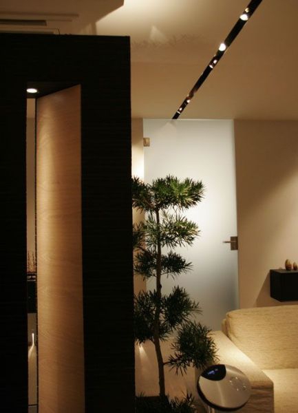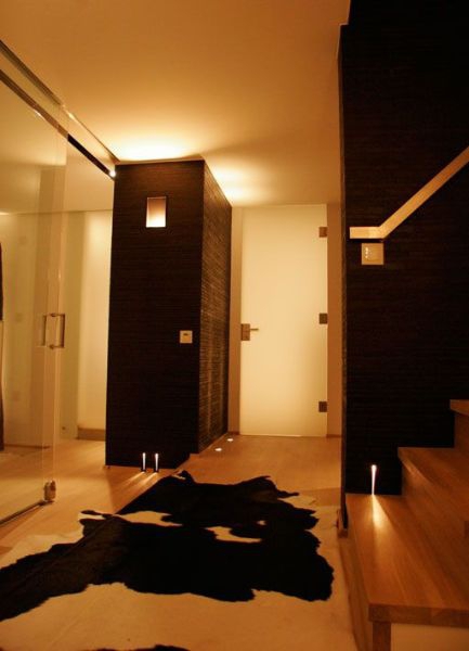le pareti quasi non esistono fatta eccezione per setti murari in pietra nera che rendono l'ambiente uno spazio unico godibile in maniera omogenea in tutte le sue stanze: dal soggiorno, al piano terra dove si trova la zona ufficio fino al terrazzo scoperto e protetto da una balaustra vetrata. l'ambiente unico si adatta al desiderio espresso dal committente di non avere restrizioni ma la possibilità di spostarsi da una zona all'altra. la stessa esigenza ha portato il progettista ad applicarsi anche nell'integrazione tecnologica negli ambienti studiando soluzioni di matrice domotica. dopo aver concordato tutte le linee generali della sistemazione interna occorreva predisporre le linee esterne dell'edificio. la casa è stata disegnata in 3d fino all'ultimo dettaglio con il contributo e la collaborazione costante del proprietario. molti sono stati i suggerimenti prima che il progetto potesse essere completato. nessun compromesso è stato fatto ai fini di una realizzazione che raggiungesse la massima qualità in ogni particolare. se il panorama è il tema guida del progetto anche senza di esso la casa è un'esperienza eccezionale in sé.