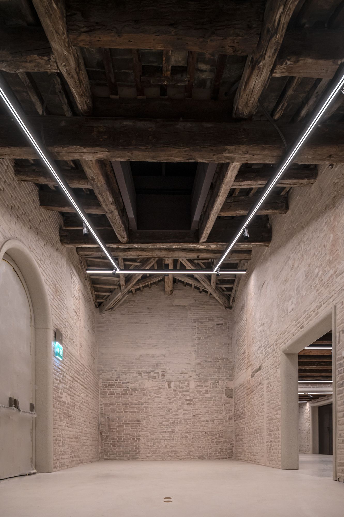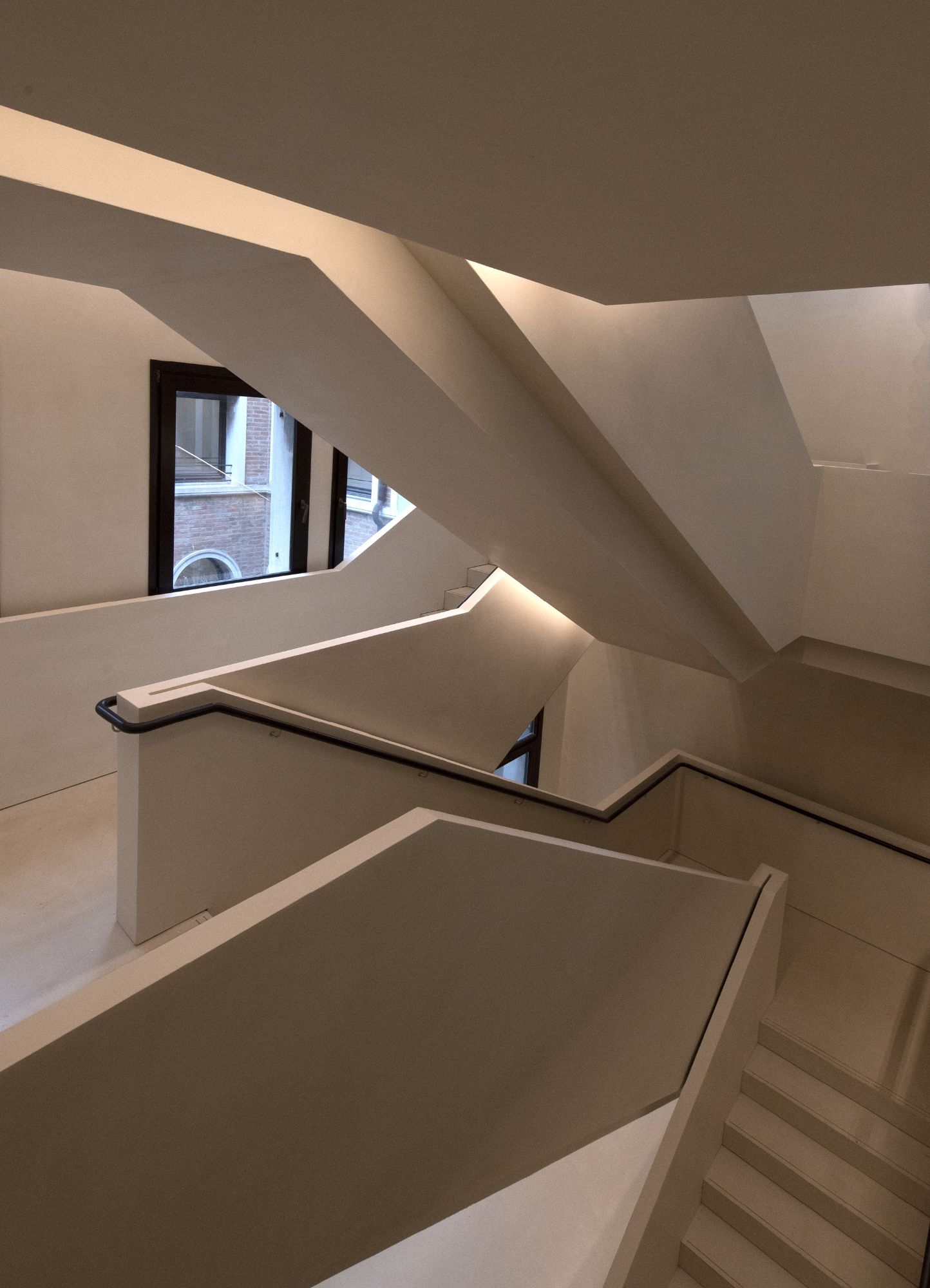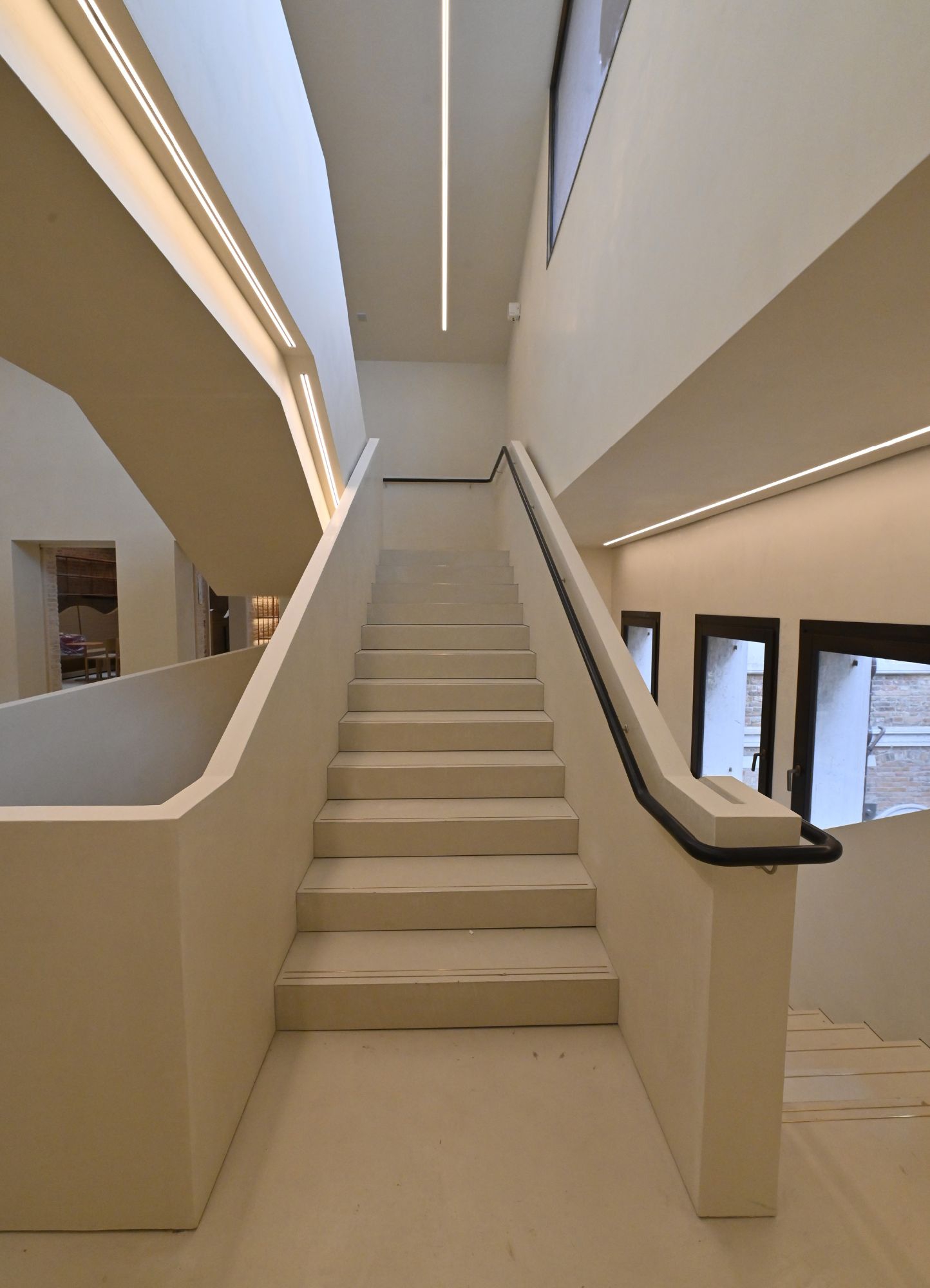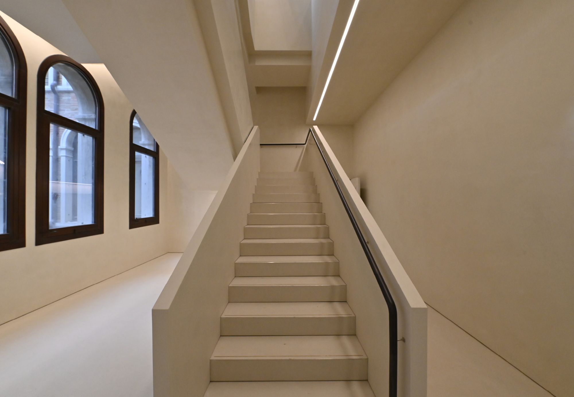 il progetto di restauro del palazzo delle procuratie vecchie in piazza san marco a venezia è la rappresentazione perfetta della capacità dell’architettura di calare il particolare nella dimensione pubblica, apportando reciproco valore. sede di assicurazioni generali dal 1832, le procuratie vecchie sono un imponente edificio di 152 metri, collocate in uno dei luoghi più riconoscibili e tutelati al mondo. progettate nella prima metà del sedicesimo secolo come residenza dei procuratori pubblici – carica amministrativa più importante dopo il doge – sono state ispirazione per la costruzione delle facciate di tutti gli altri edifici della piazza. nel 2017 assicurazioni generali ha incaricato david chipperfield architects di realizzare il progetto di restauro dell’intero edificio. lo studio ha quindi fondato il suo approccio a questo luogo su principi e azioni che si adattassero alle scoperte a mano a mano rivelate dall’avanzare del cantiere, lasciando quindi che fosse l’edificio a parlare e a raccontare le sue stratificazioni. considerando la complessità del progetto architettonico, realizzare il progetto illuminotecnico ha significato soprattutto rispondere a tutte le necessità: luce di funzione, luce che valorizzasse l’architettura e le decorazioni, luce che rispettasse le caratteristiche storiche del palazzo. gli spazi dedicati ai prestigiosi uffici del primo e secondo piano sono tutti caratterizzati da preziosi affreschi e stucchi che conferiscono ad ogni stanza una sua personalità, per questo è stata studiata un’illuminazione non invasiva, che non richiedesse interventi su soffitti e pareti. le piantane di mn sistema presentano una doppia soluzione di luce: da una parte un’illuminazione diretta sulle scrivanie e aree di lavoro senza effetti di abbagliamento grazie alle ottiche frangiluce, dall’altra un’illuminazione indiretta per l’ambiente che non danneggia gli elementi artistici grazie all’altissima qualità dei led. per le aree di passaggio come lo scalone storico ed i corridoi è stata realizzata una versione speciale di n55 parete con braccio in una versione speciale che, richiamando il concetto delle fiaccole e dei candelabri, si integra nell’antico apportando un tocco di contemporaneità. la riorganizzazione dell’accessibilità ai piani ha richiesto la creazione di una nuova parte di scala dall’aspetto minimale e moderno, ma che trasmette comunque la storicità del luogo. qui la luce è data da A1 sistema, la cui linearità pulita e discreta garantisce il massimo della qualità della luce senza renderla protagonista dello spazio. il terzo piano è costituito da una sequenza di quindici archi in pietra, slanciati ed eleganti, che formano un imponente corridoio di 80 metri, per il quale è stato utilizzato il binario A1 con faretti n55. in fondo a questo spazio si accede al grande auditorium, la cui trama di travi è stata sfruttata per alloggiare ariacablata, un sistema di canali che permettono di fornire non soltanto soluzioni di luce lineare o spot, ma anche apparecchi di maggiori dimensioni come teste mobili, altoparlanti, schermi e altro occultandone il cablaggio. quest’aula è la sintesi finale di un concetto che ha guidato l’intento di tutto il progetto: rendere vivido il dialogo fra passato e contemporaneità appellandosi a nuove tecnologie che non invadono, ma valorizzano e preservano un’architettura unica al mondo.