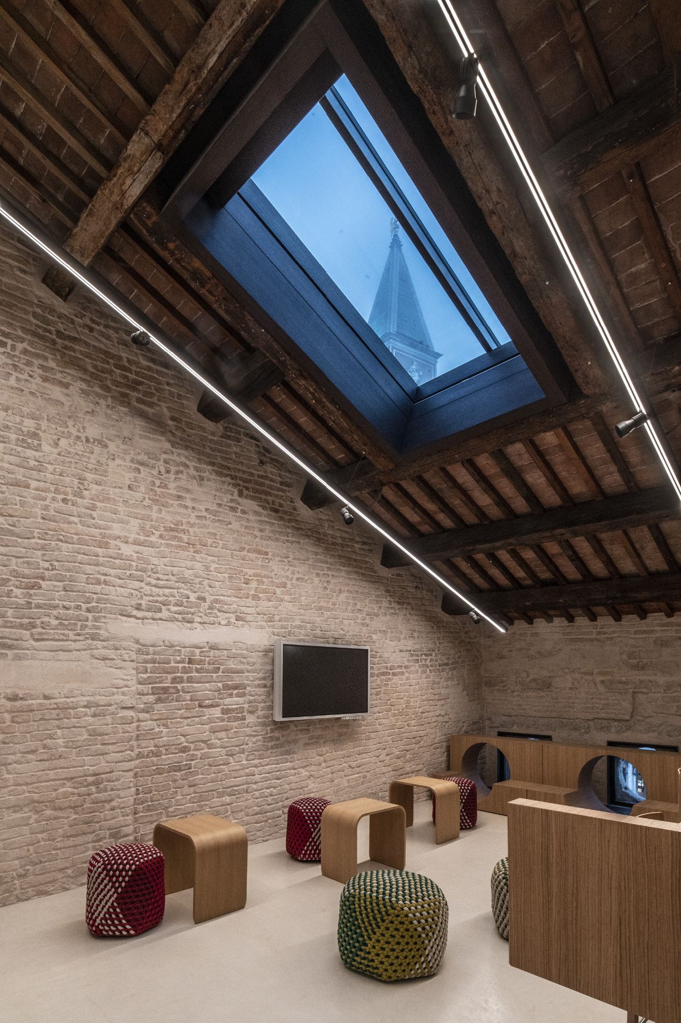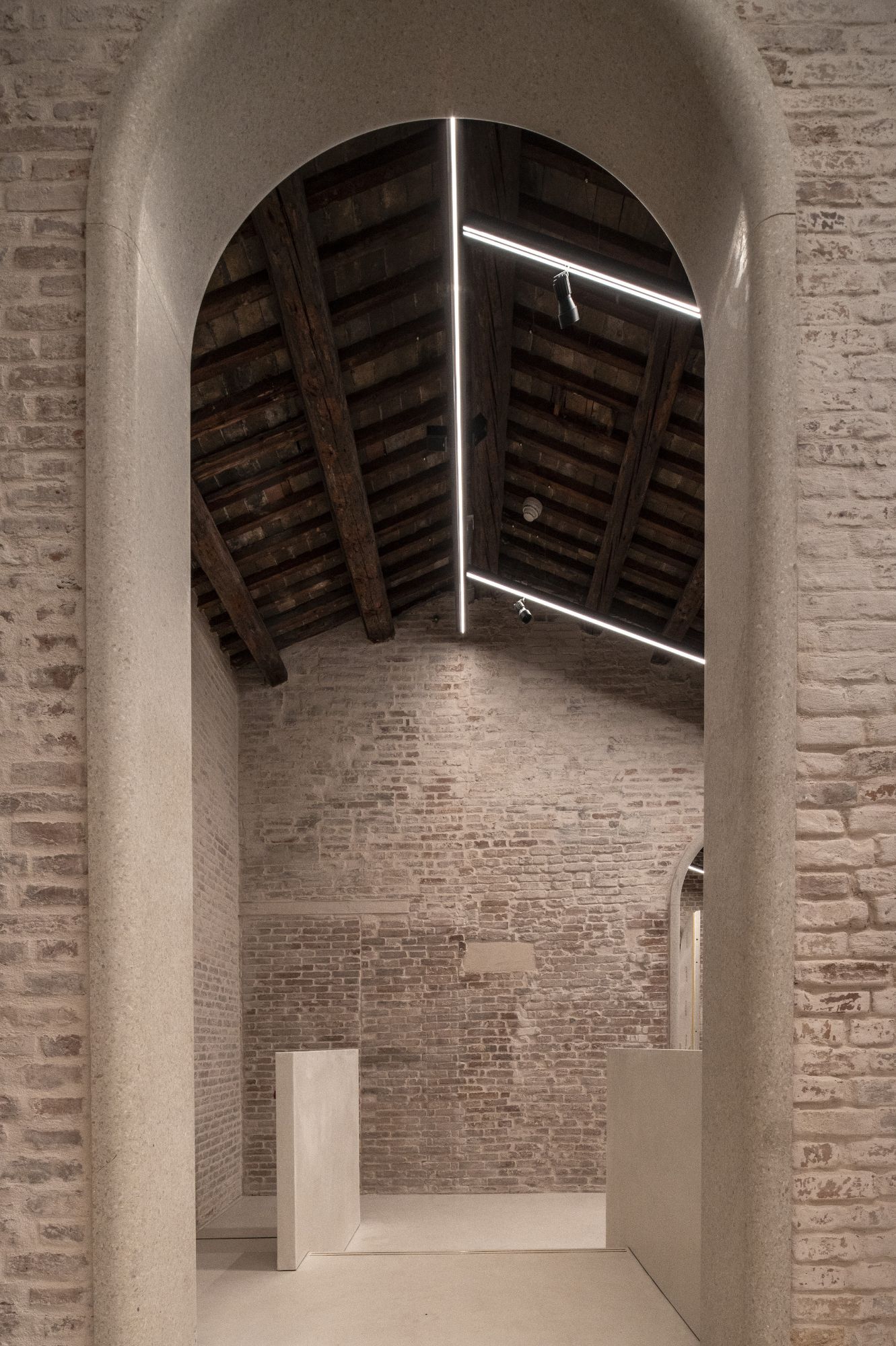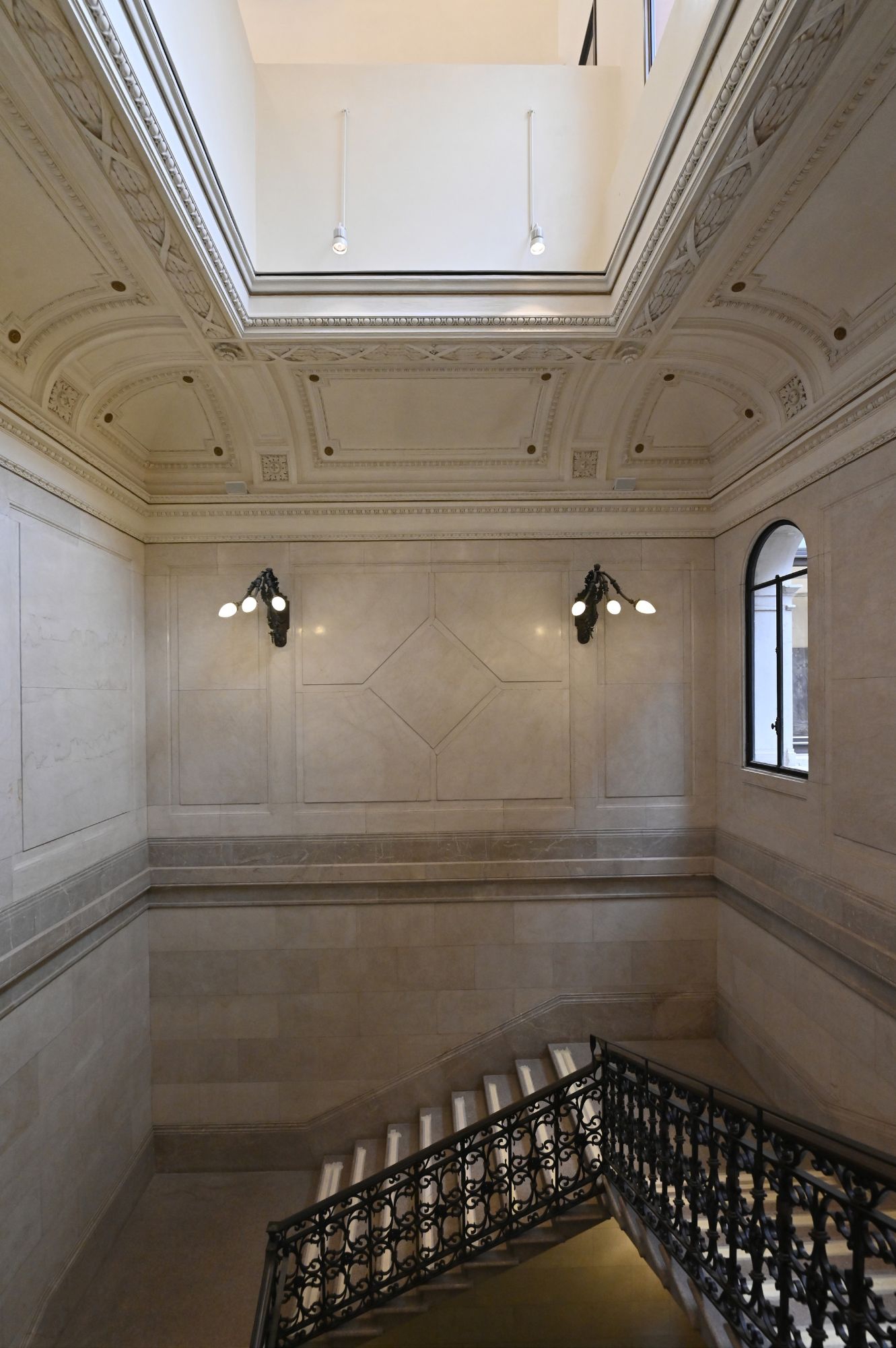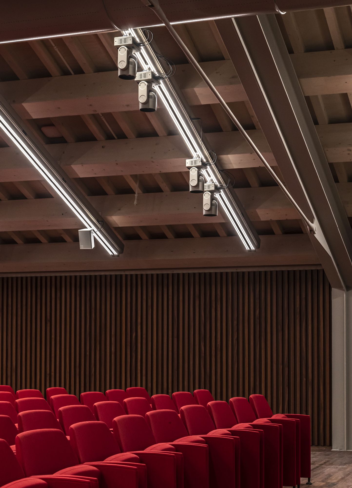 il progetto di restauro del palazzo delle procuratie vecchie in piazza san marco a venezia è la rappresentazione perfetta della capacità dell’architettura di calare il particolare nella dimensione pubblica, apportando reciproco valore. sede di assicurazioni generali dal 1832, le procuratie vecchie sono un imponente edificio di 152 metri, collocate in uno dei luoghi più riconoscibili e tutelati al mondo. progettate nella prima metà del sedicesimo secolo come residenza dei procuratori pubblici – carica amministrativa più importante dopo il doge – sono state ispirazione per la costruzione delle facciate di tutti gli altri edifici della piazza. nel 2017 assicurazioni generali ha incaricato david chipperfield architects di realizzare il progetto di restauro dell’intero edificio. lo studio ha quindi fondato il suo approccio a questo luogo su principi e azioni che si adattassero alle scoperte a mano a mano rivelate dall’avanzare del cantiere, lasciando quindi che fosse l’edificio a parlare e a raccontare le sue stratificazioni. considerando la complessità del progetto architettonico, realizzare il progetto illuminotecnico ha significato soprattutto rispondere a tutte le necessità: luce di funzione, luce che valorizzasse l’architettura e le decorazioni, luce che rispettasse le caratteristiche storiche del palazzo. gli spazi dedicati ai prestigiosi uffici del primo e secondo piano sono tutti caratterizzati da preziosi affreschi e stucchi che conferiscono ad ogni stanza una sua personalità, per questo è stata studiata un’illuminazione non invasiva, che non richiedesse interventi su soffitti e pareti. le piantane di mn sistema presentano una doppia soluzione di luce: da una parte un’illuminazione diretta sulle scrivanie e aree di lavoro senza effetti di abbagliamento grazie alle ottiche frangiluce, dall’altra un’illuminazione indiretta per l’ambiente che non danneggia gli elementi artistici grazie all’altissima qualità dei led. per le aree di passaggio come lo scalone storico ed i corridoi è stata realizzata una versione speciale di n55 parete con braccio in una versione speciale che, richiamando il concetto delle fiaccole e dei candelabri, si integra nell’antico apportando un tocco di contemporaneità. la riorganizzazione dell’accessibilità ai piani ha richiesto la creazione di una nuova parte di scala dall’aspetto minimale e moderno, ma che trasmette comunque la storicità del luogo. qui la luce è data da A1 sistema, la cui linearità pulita e discreta garantisce il massimo della qualità della luce senza renderla protagonista dello spazio. il terzo piano è costituito da una sequenza di quindici archi in pietra, slanciati ed eleganti, che formano un imponente corridoio di 80 metri, per il quale è stato utilizzato il binario A1 con faretti n55. in fondo a questo spazio si accede al grande auditorium, la cui trama di travi è stata sfruttata per alloggiare ariacablata, un sistema di canali che permettono di fornire non soltanto soluzioni di luce lineare o spot, ma anche apparecchi di maggiori dimensioni come teste mobili, altoparlanti, schermi e altro occultandone il cablaggio. quest’aula è la sintesi finale di un concetto che ha guidato l’intento di tutto il progetto: rendere vivido il dialogo fra passato e contemporaneità appellandosi a nuove tecnologie che non invadono, ma valorizzano e preservano un’architettura unica al mondo.